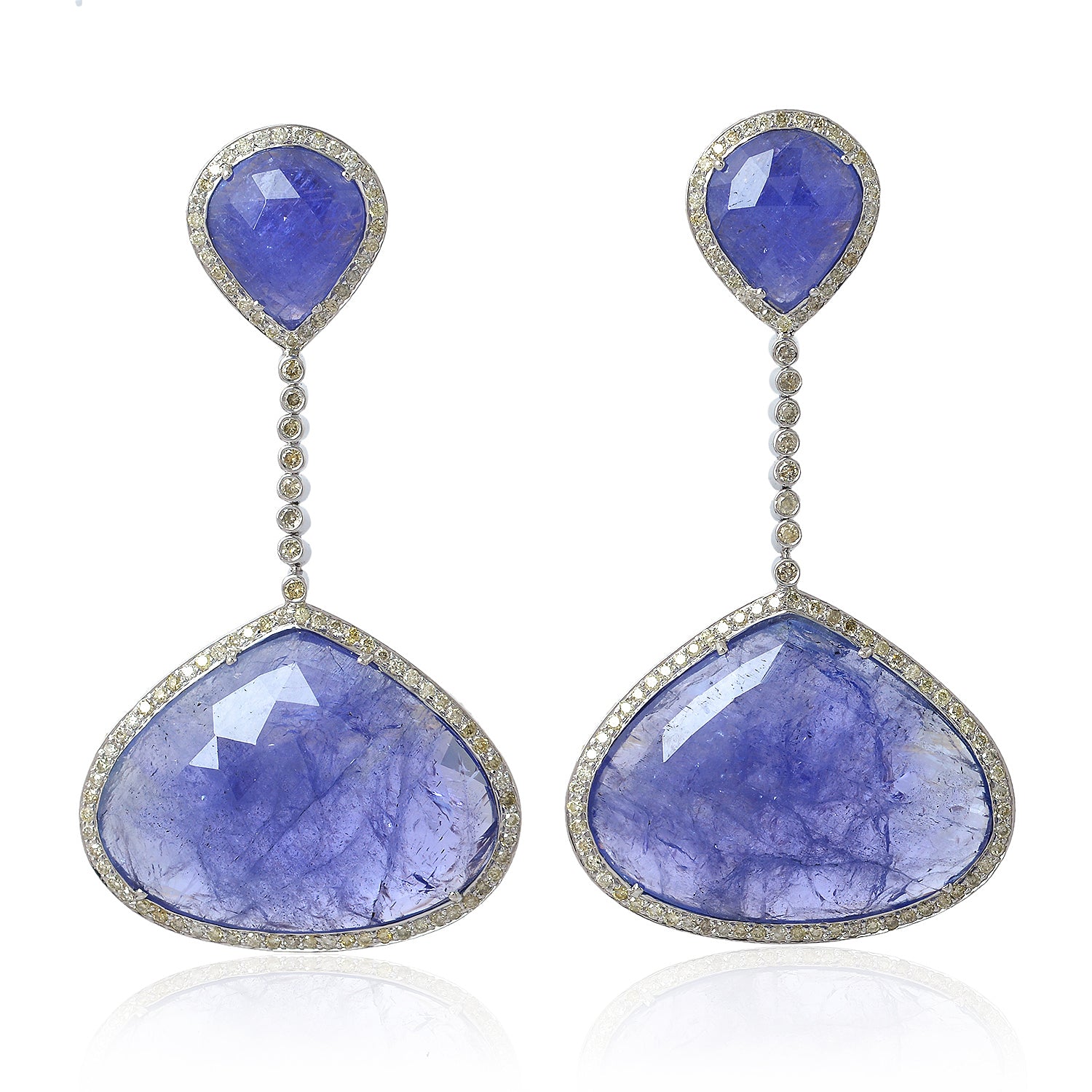 18K White Gold Pear-Cut Tanzanite Doublet & Bezel-Set Diamond Dangle Earrings