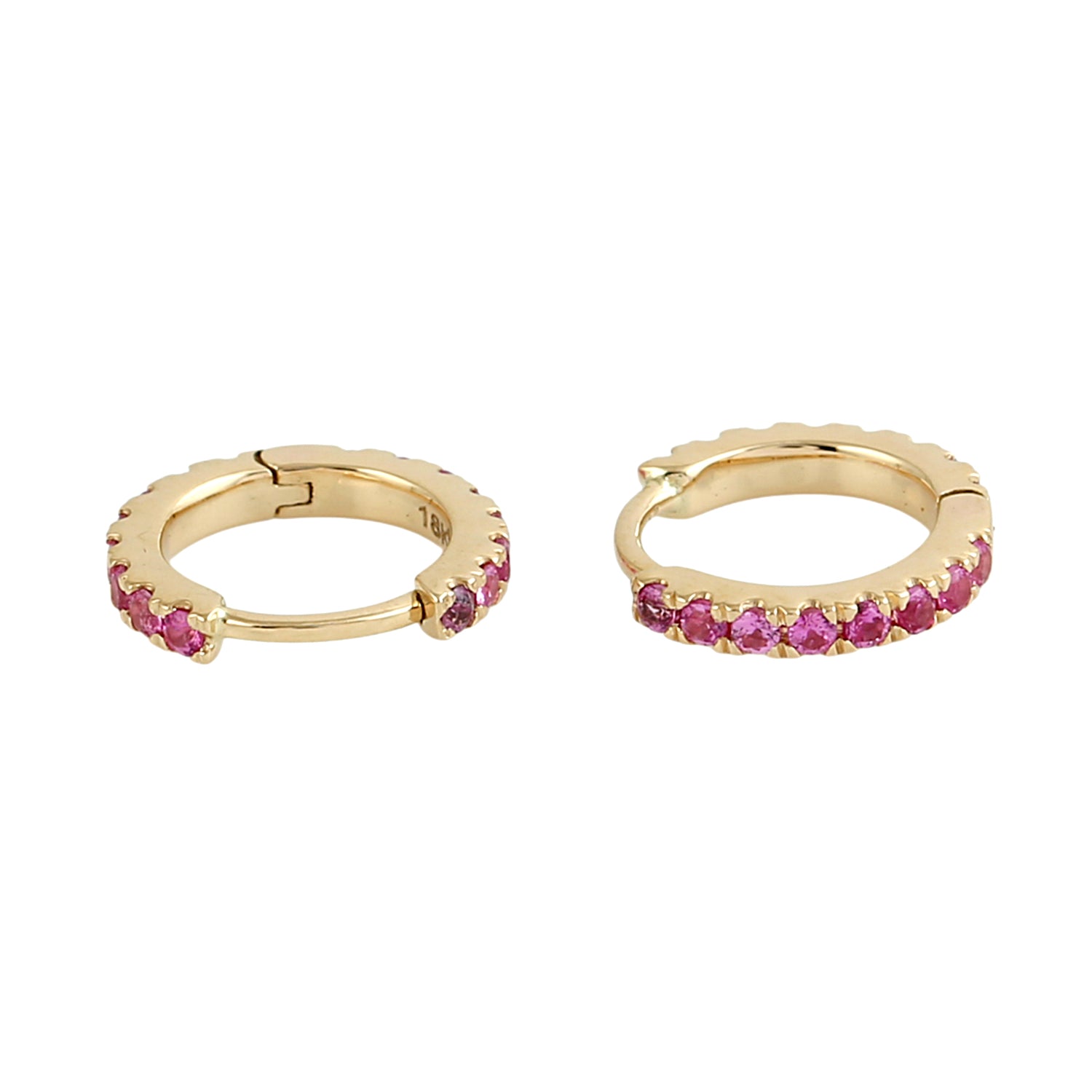 Pink Sapphire Pavé Huggie Earrings in 18K Yellow Gold