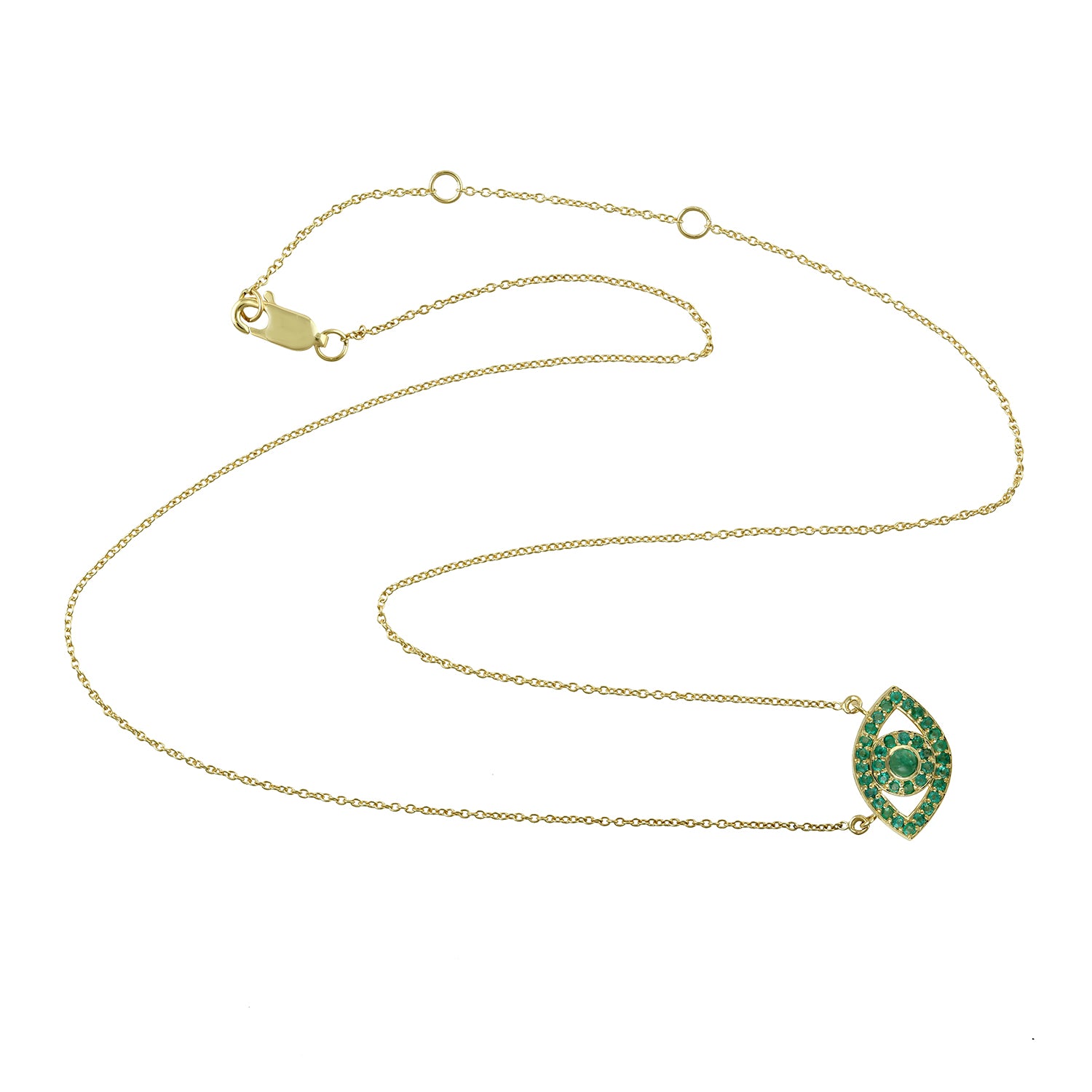 14K Yellow Gold Pave Emerald Evil Eye Choker Necklace – Dainty Protection Jewelry
