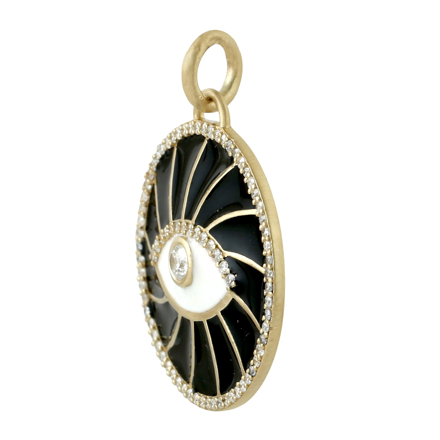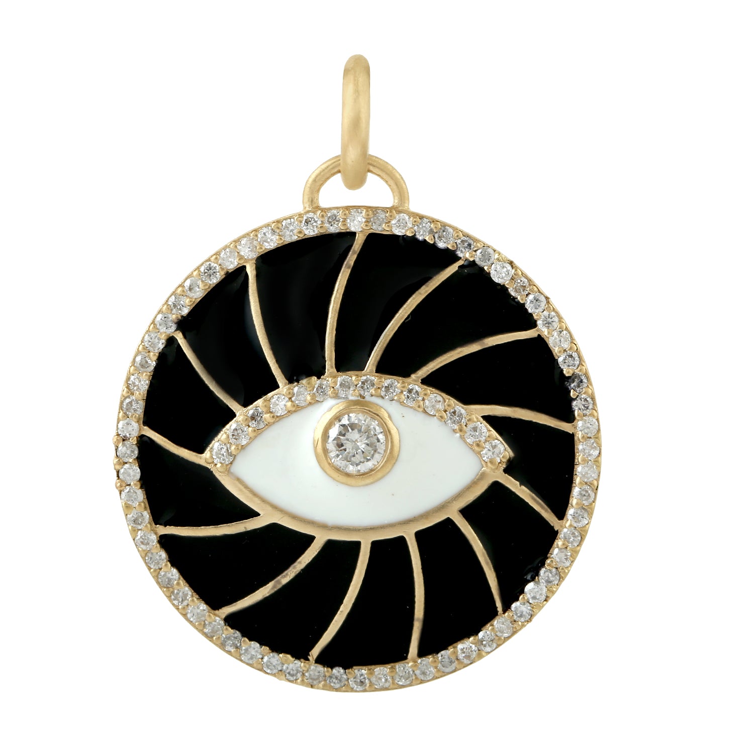 18K Yellow Gold Pave Diamond Evil Eye Enamel Charm Pendant