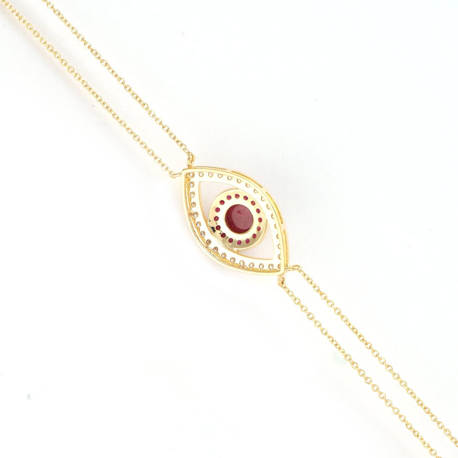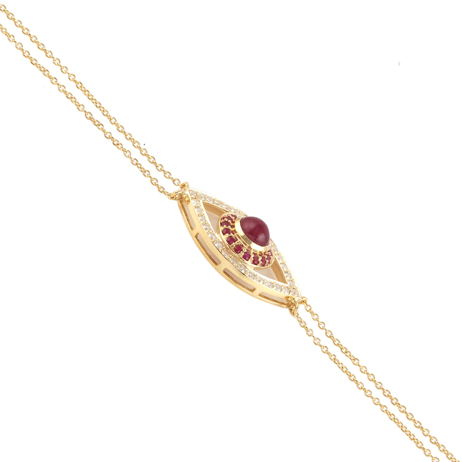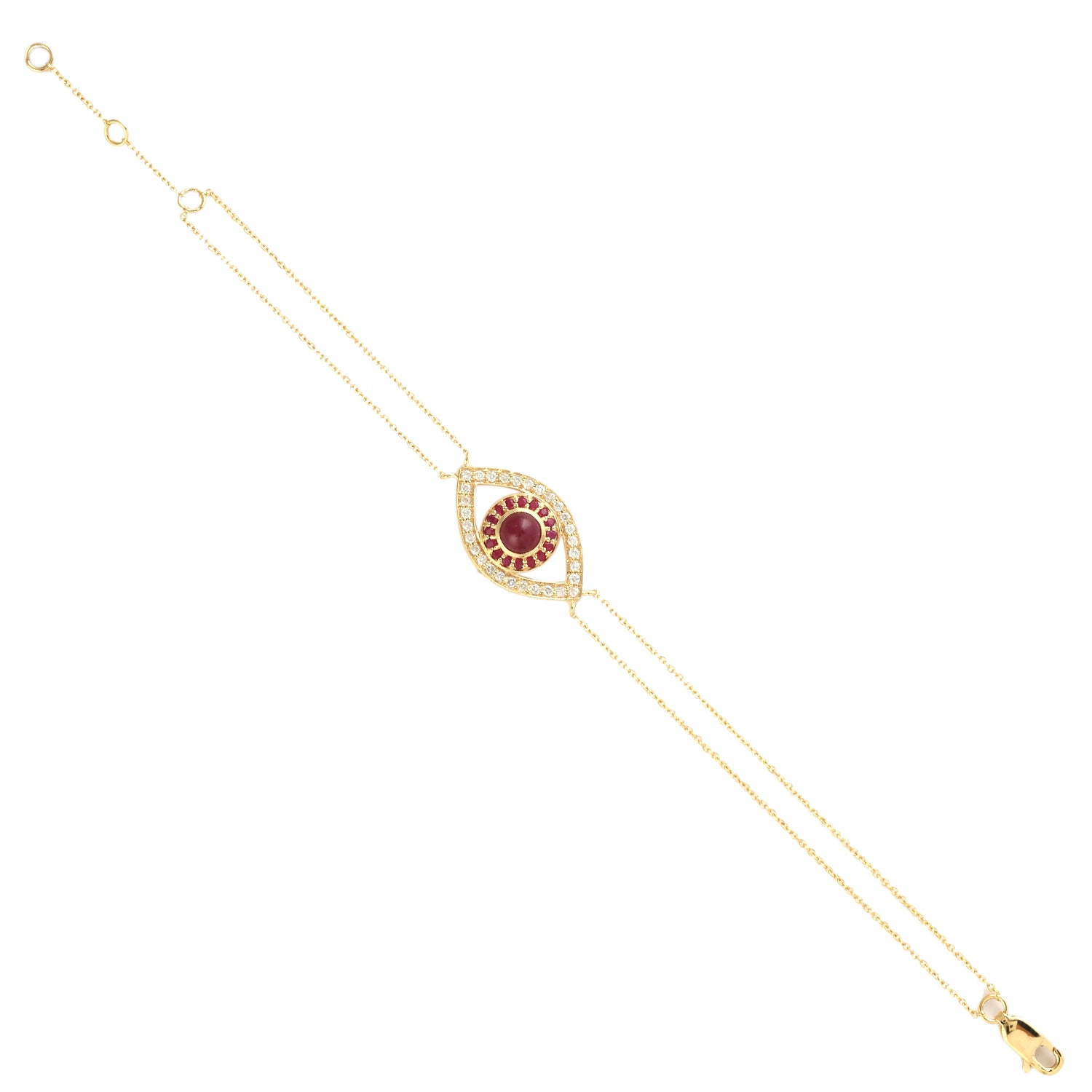 Ruby Pave Diamond Evil Eye Fixed & Flexible Bracelet In 14K Yellow Gold