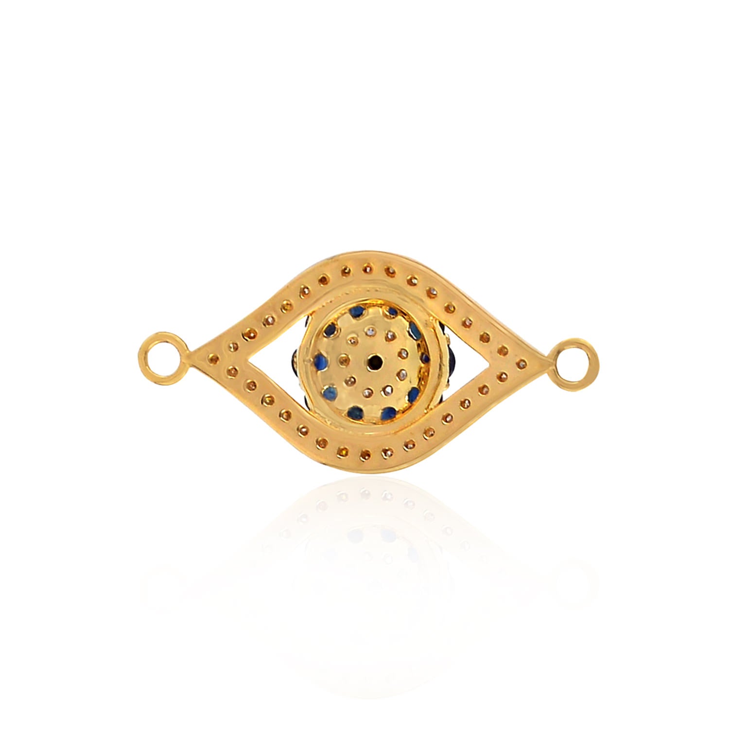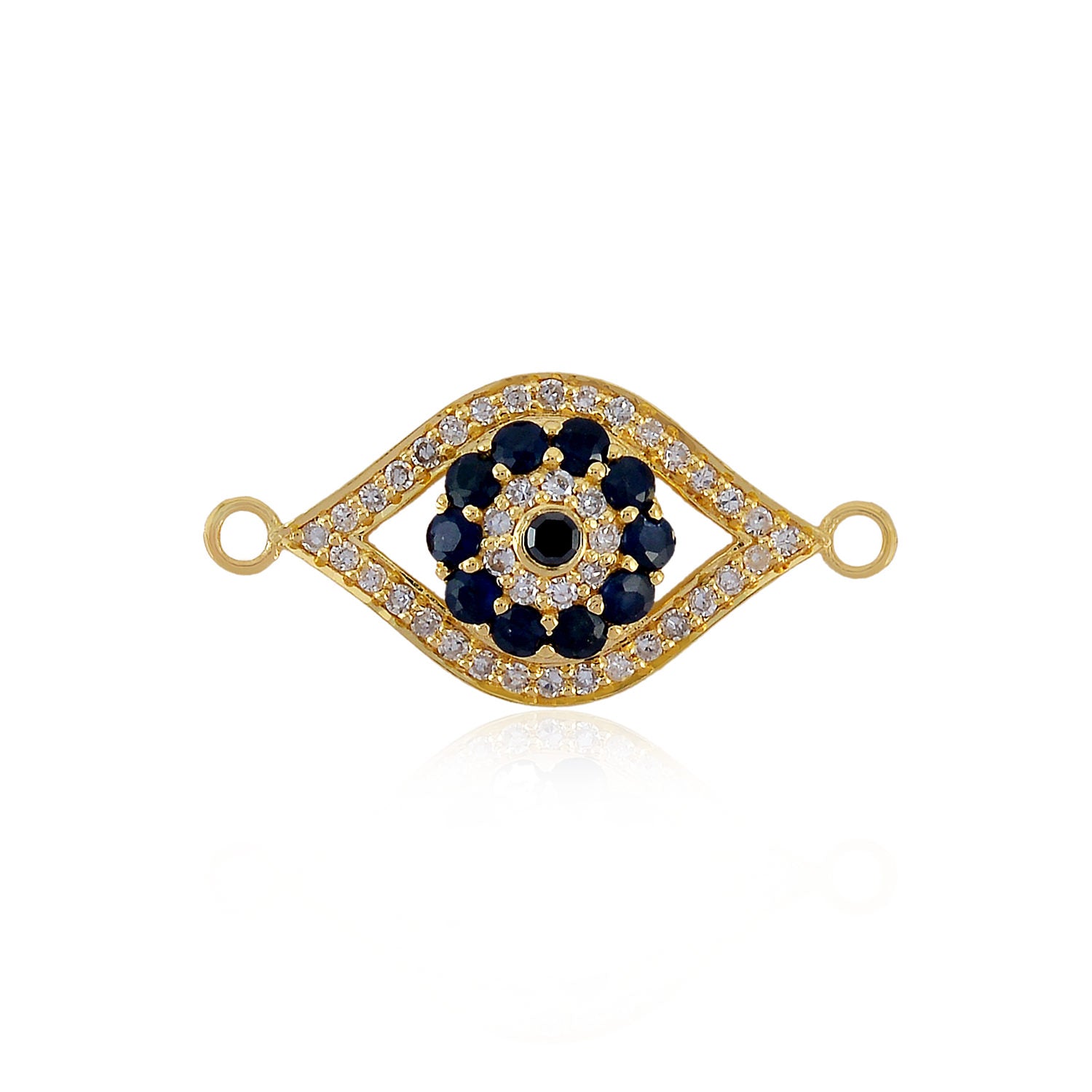 Blue Sapphire Gemstone & Diamond Evil Eye Connector Finding in Gold