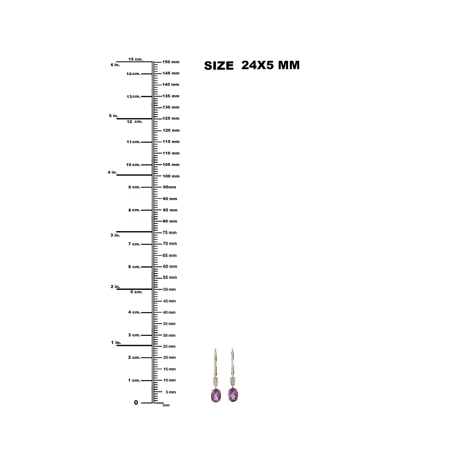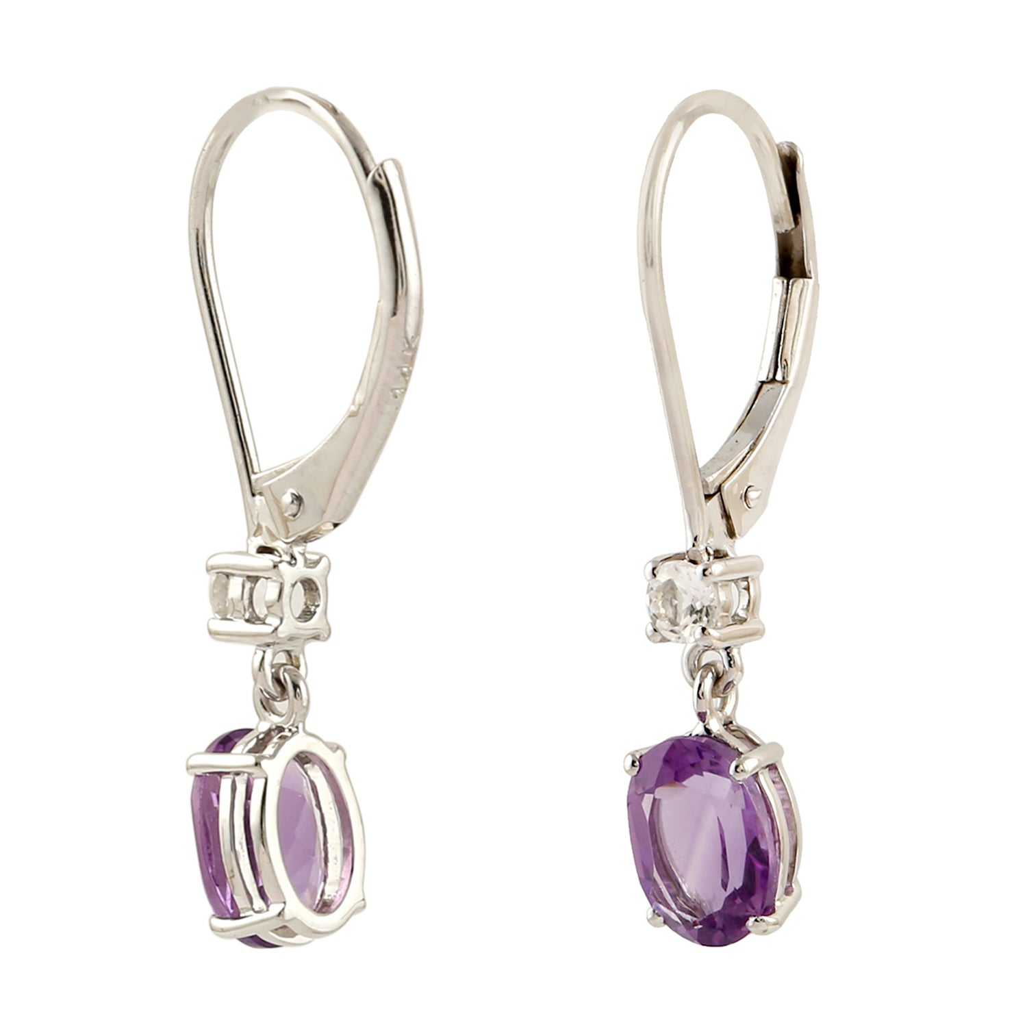 Oval Cut Amethyst Prong Cut White Topaz Lever Back Dangler In 14K White Gold