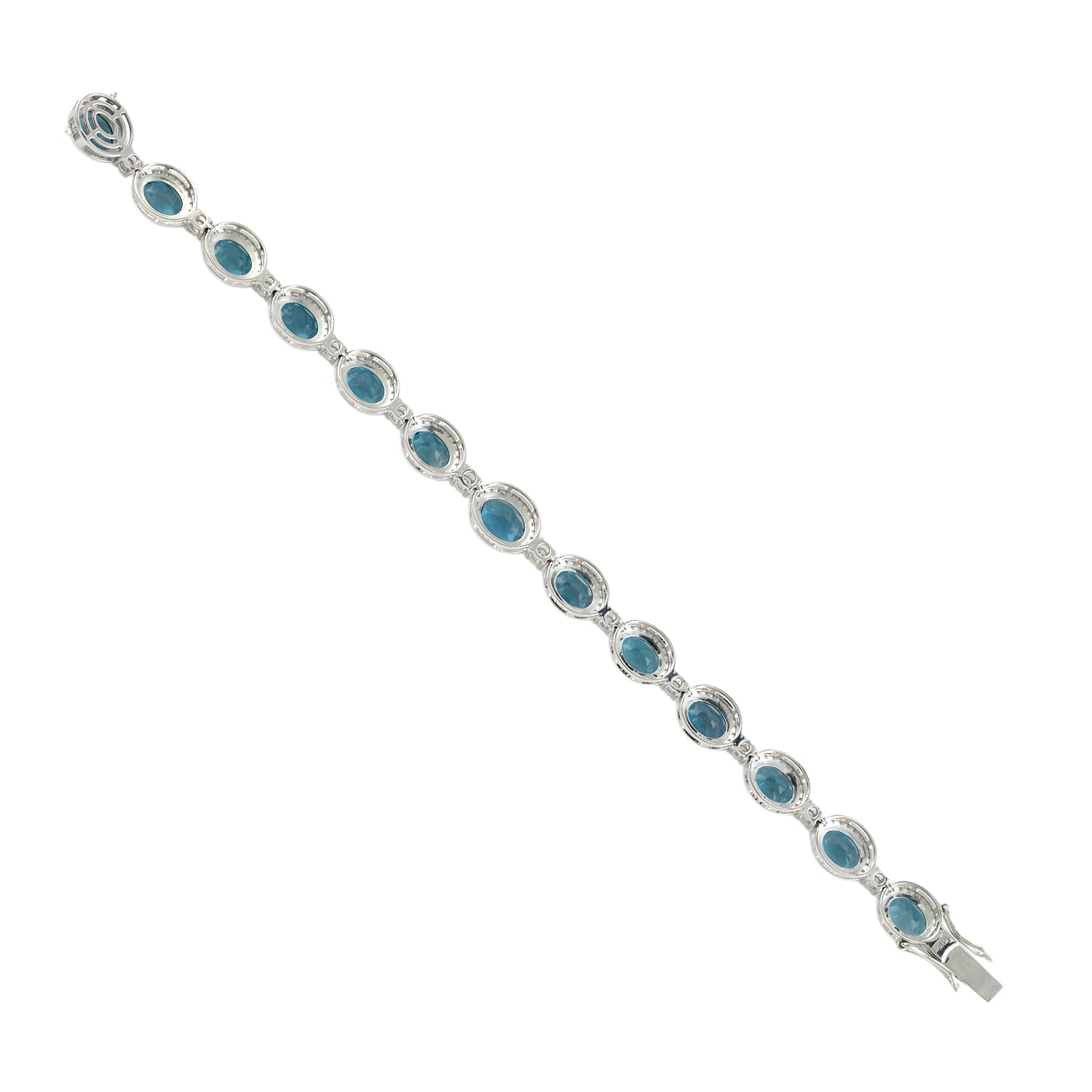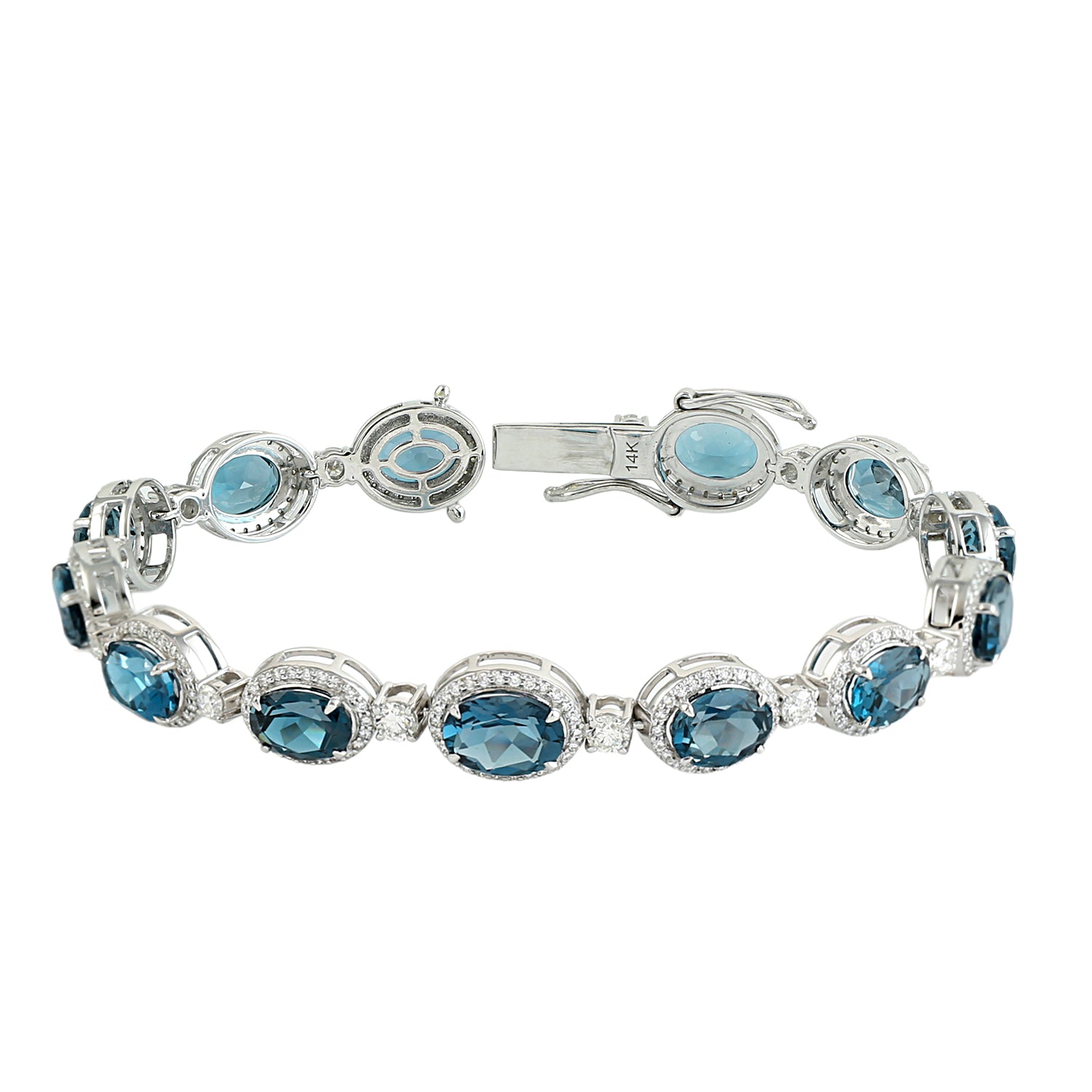 Oval Cut London Blue Topaz Pavé Diamond Fixed and Flexible Bracelet in 14K White Gold