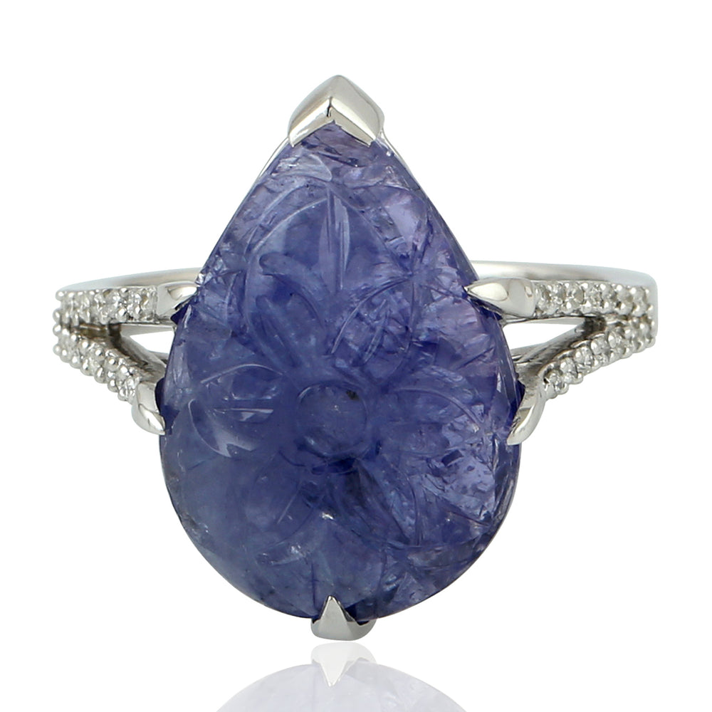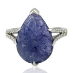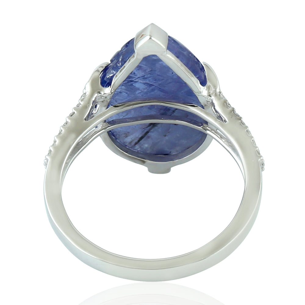 Carved Tanzanite & Pave Diamond Designer Ring in 18k White Gold – Unique Gift for Her