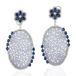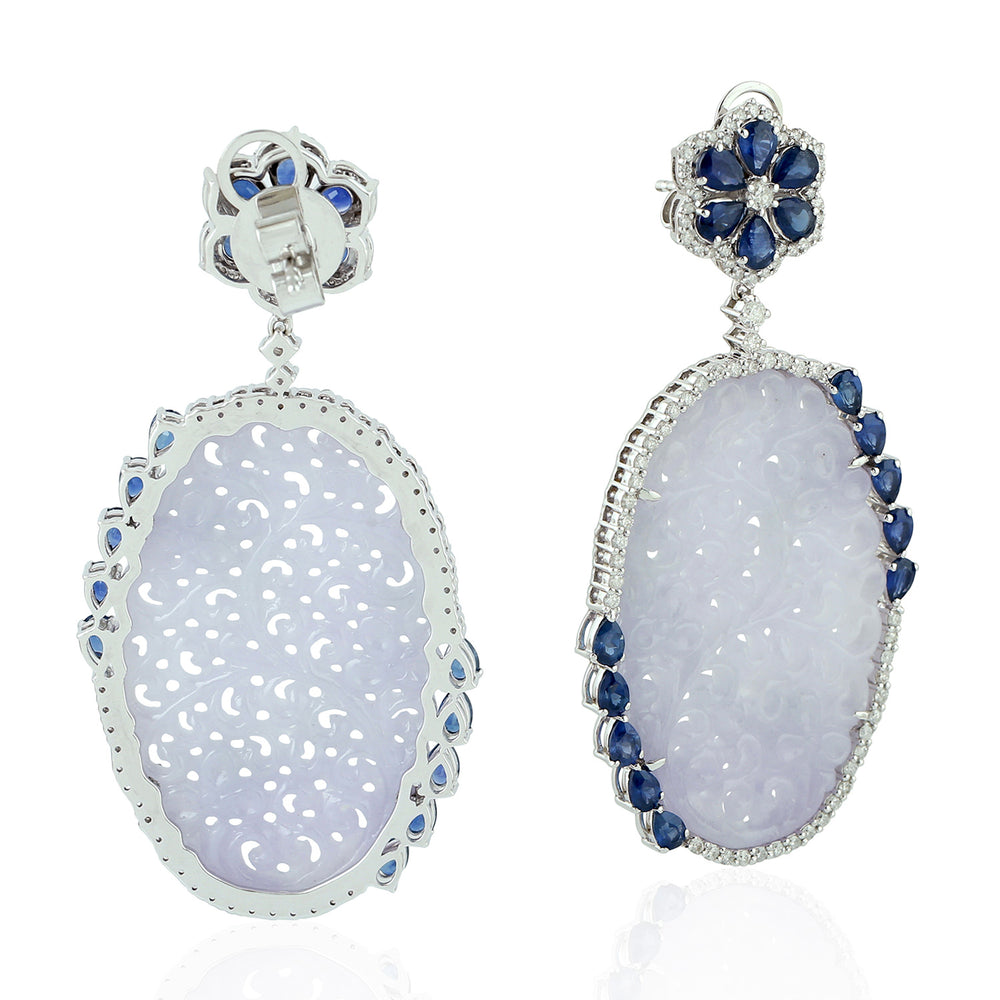 Carved Jade Pear Cut Blue Sapphire Pave Diamond Dangler In White Gold