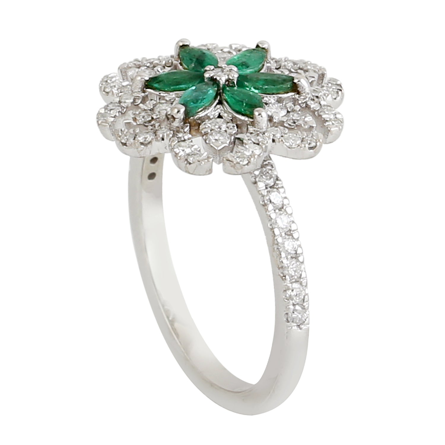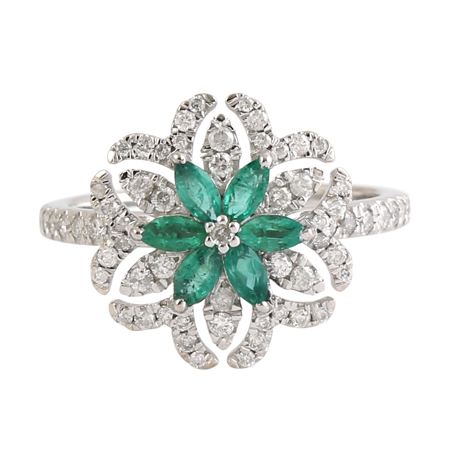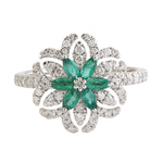 Marquise Cut Emerald Pave Diamond Daisy Ring For Her In 18k White Gold