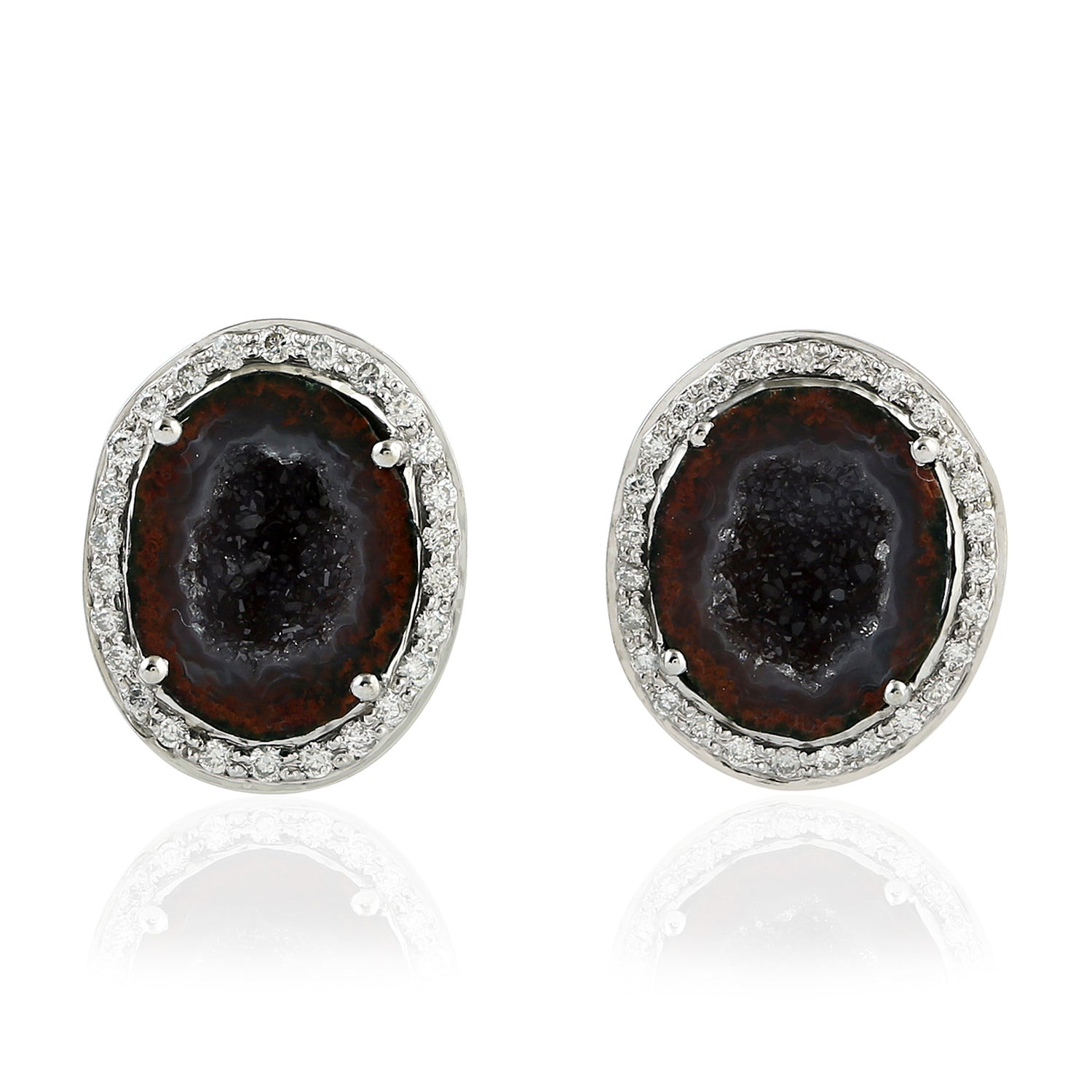 Unshaped Geode Prong Diamond Stud Earrings In 18K White Gold Jewelry For Her