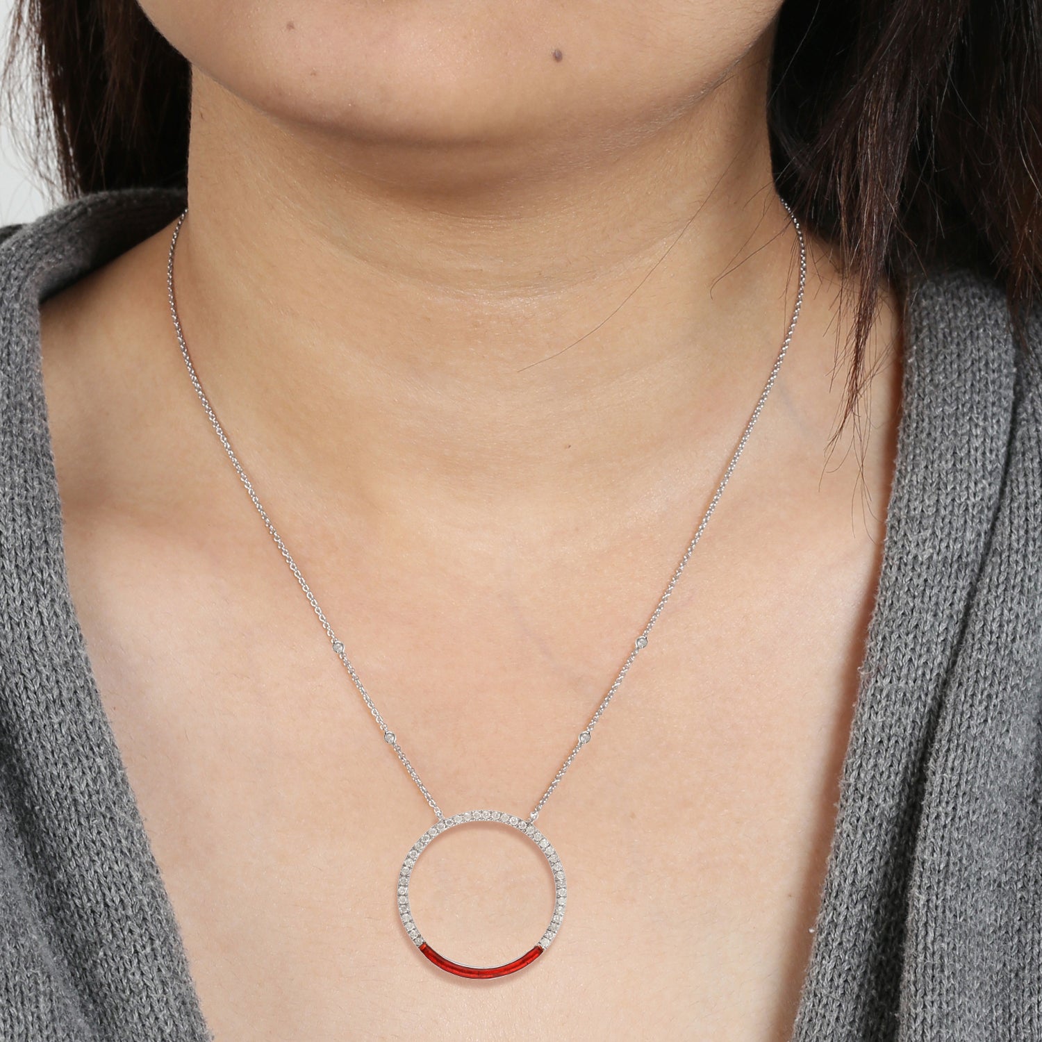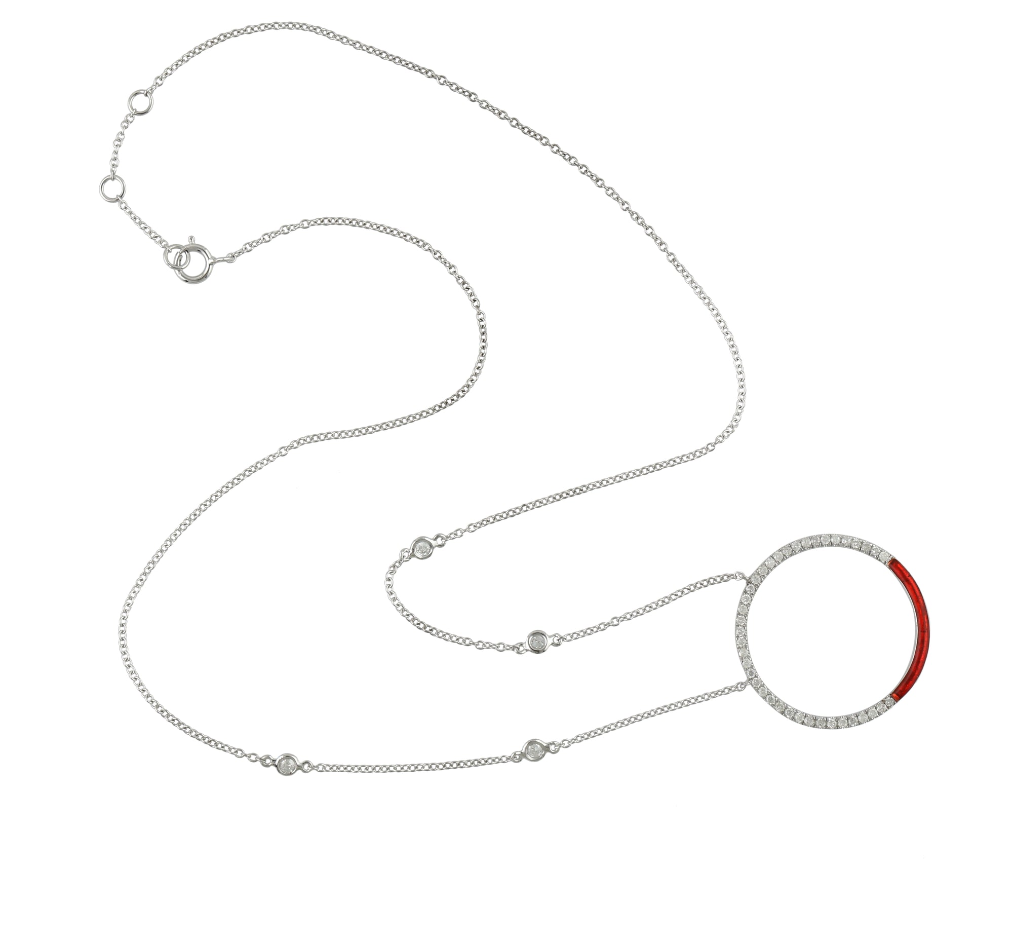 • Pavé Diamond Hollow Enamel Adjustable Chain Necklace in 14K White Gold