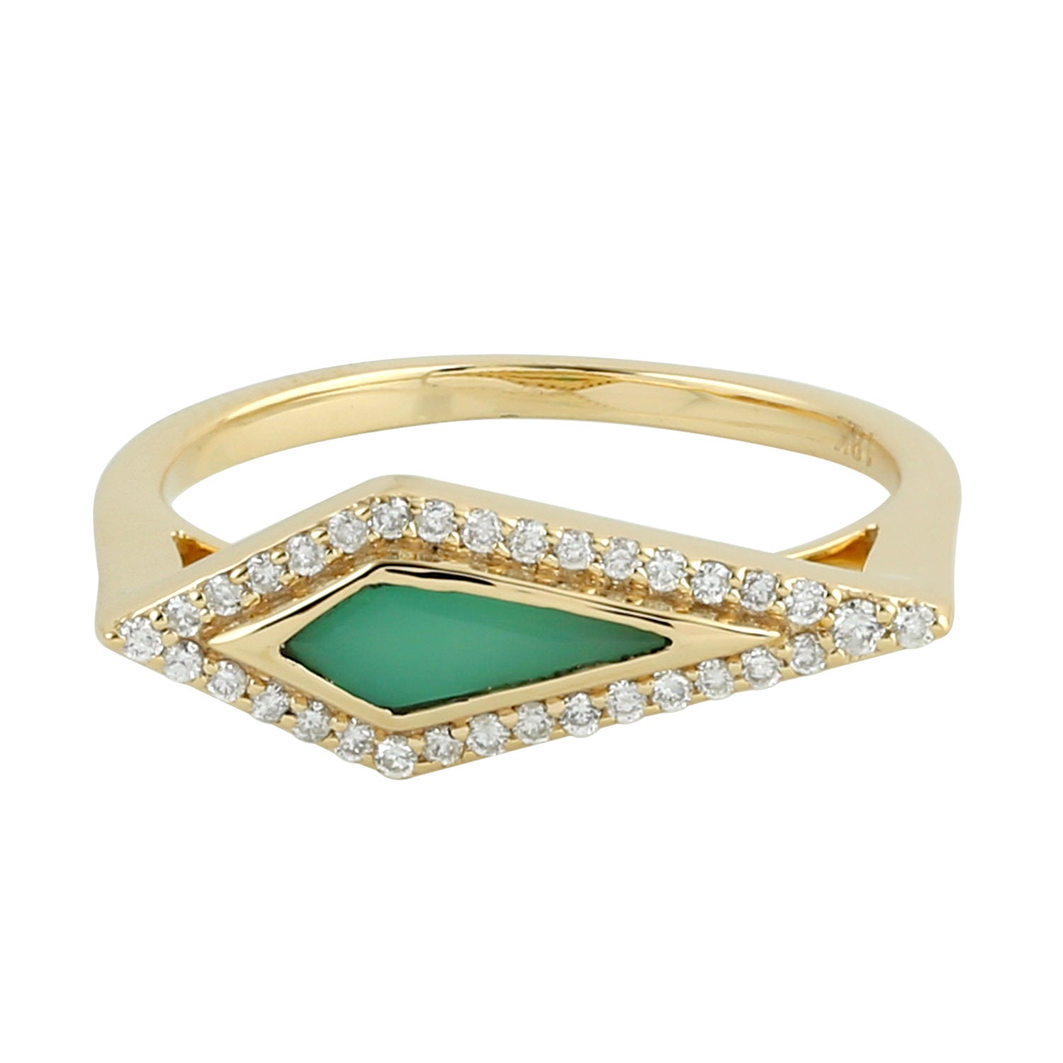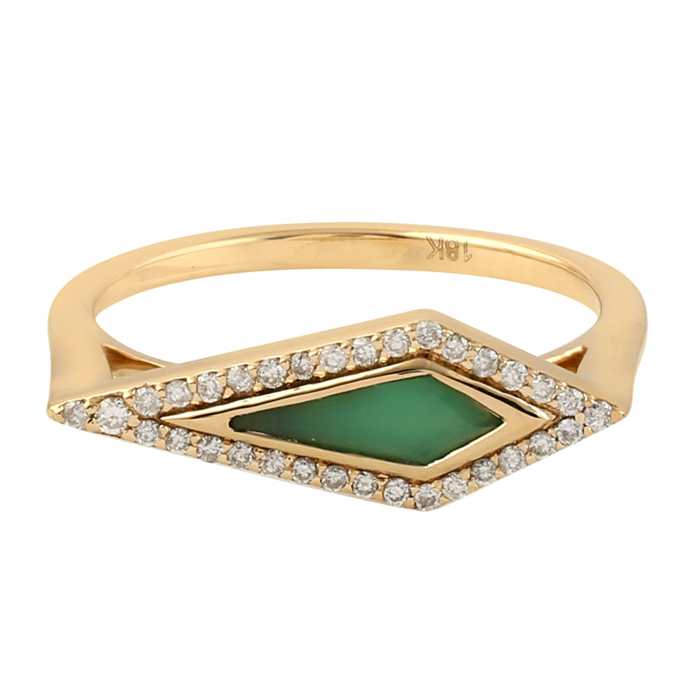 Kite Cut Chrysoprase Pave Diamond Geometric Dainty Ring In 18K Yellow Gold