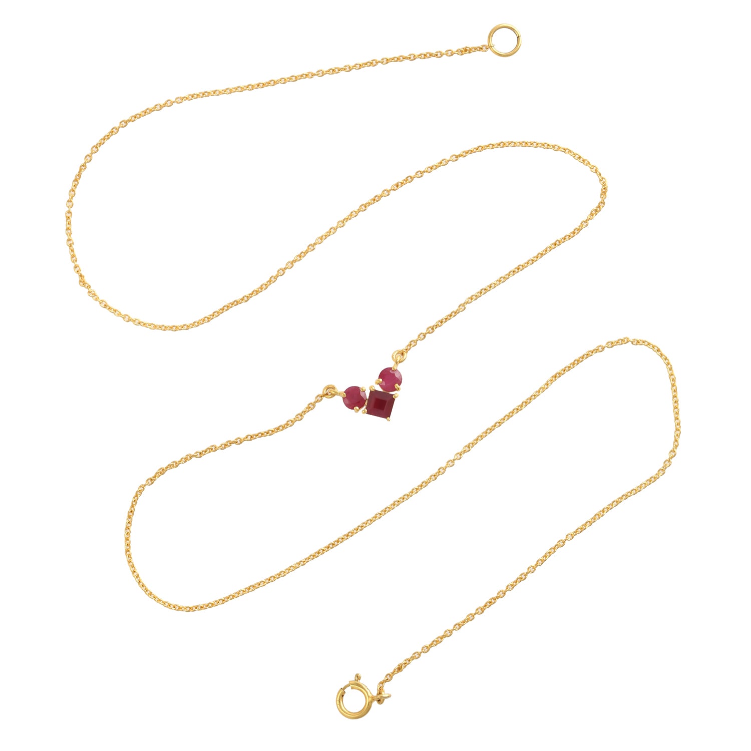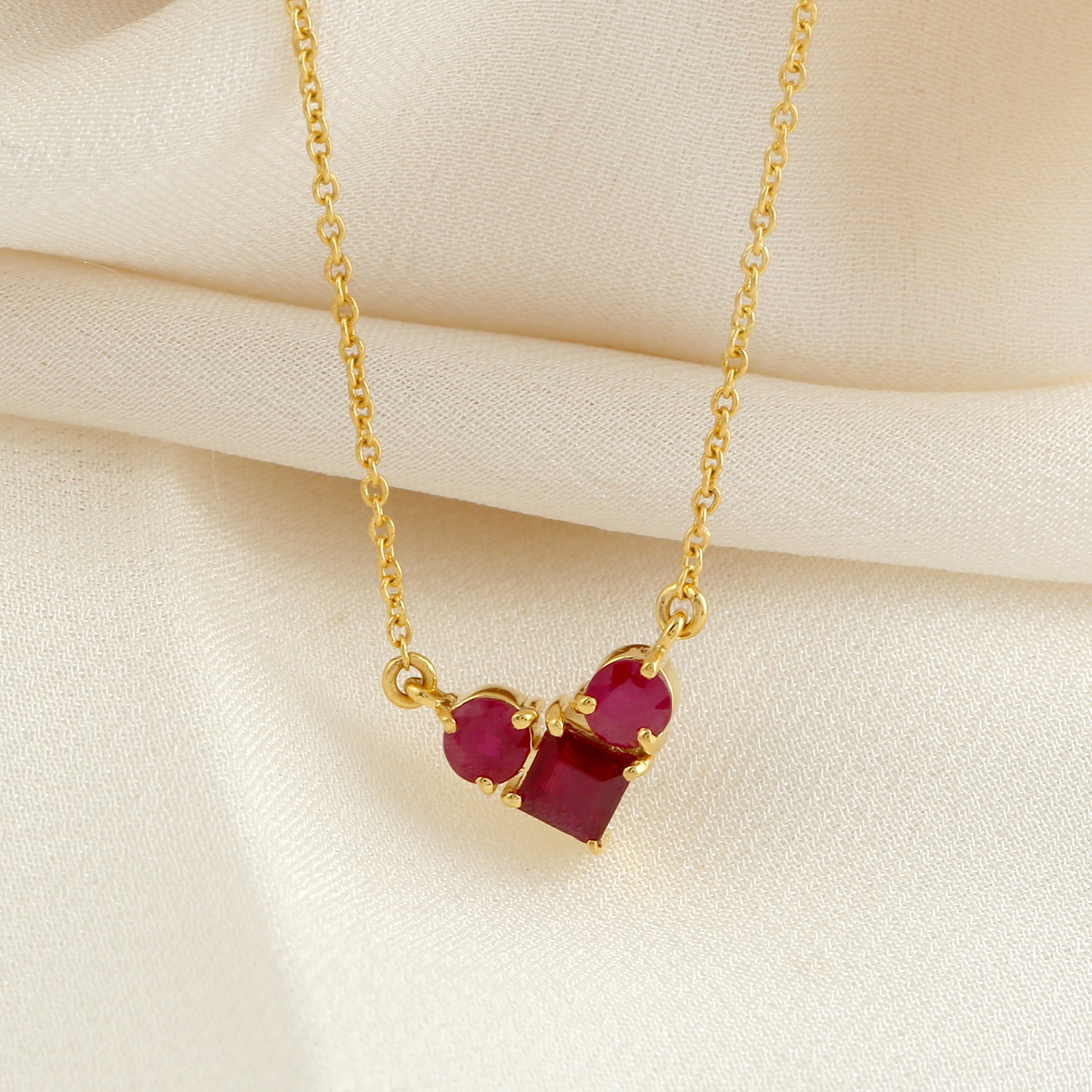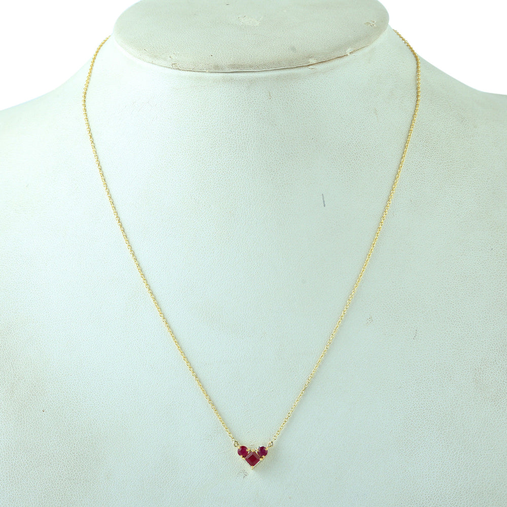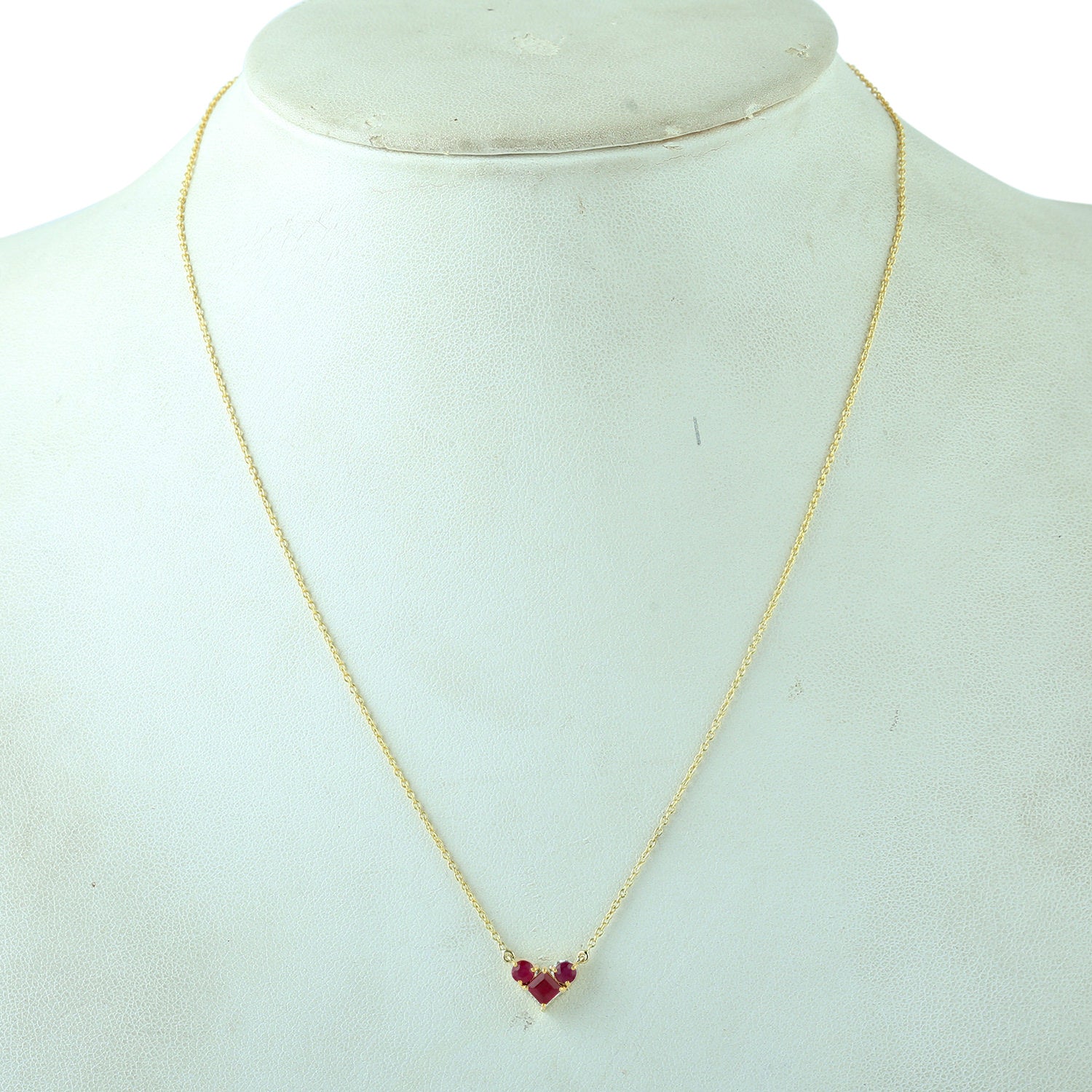 Ruby Gemstone Three Stone Heart Design Choker Necklace In 14k Yellow Gold