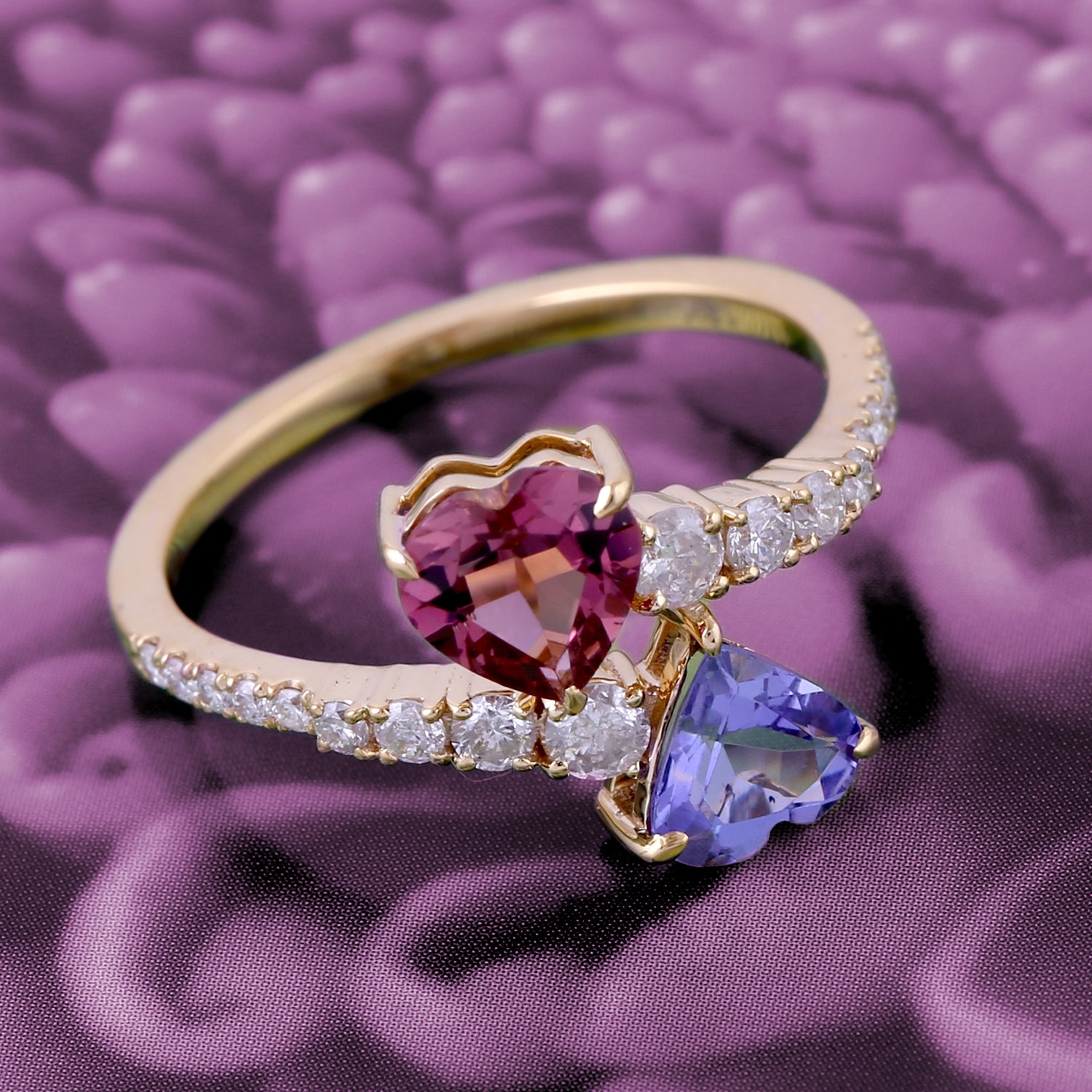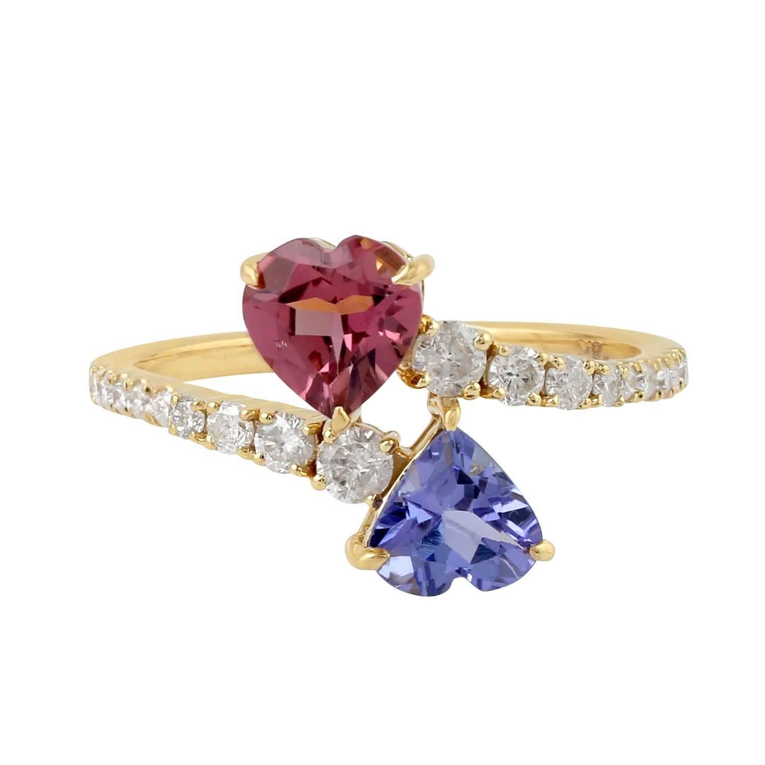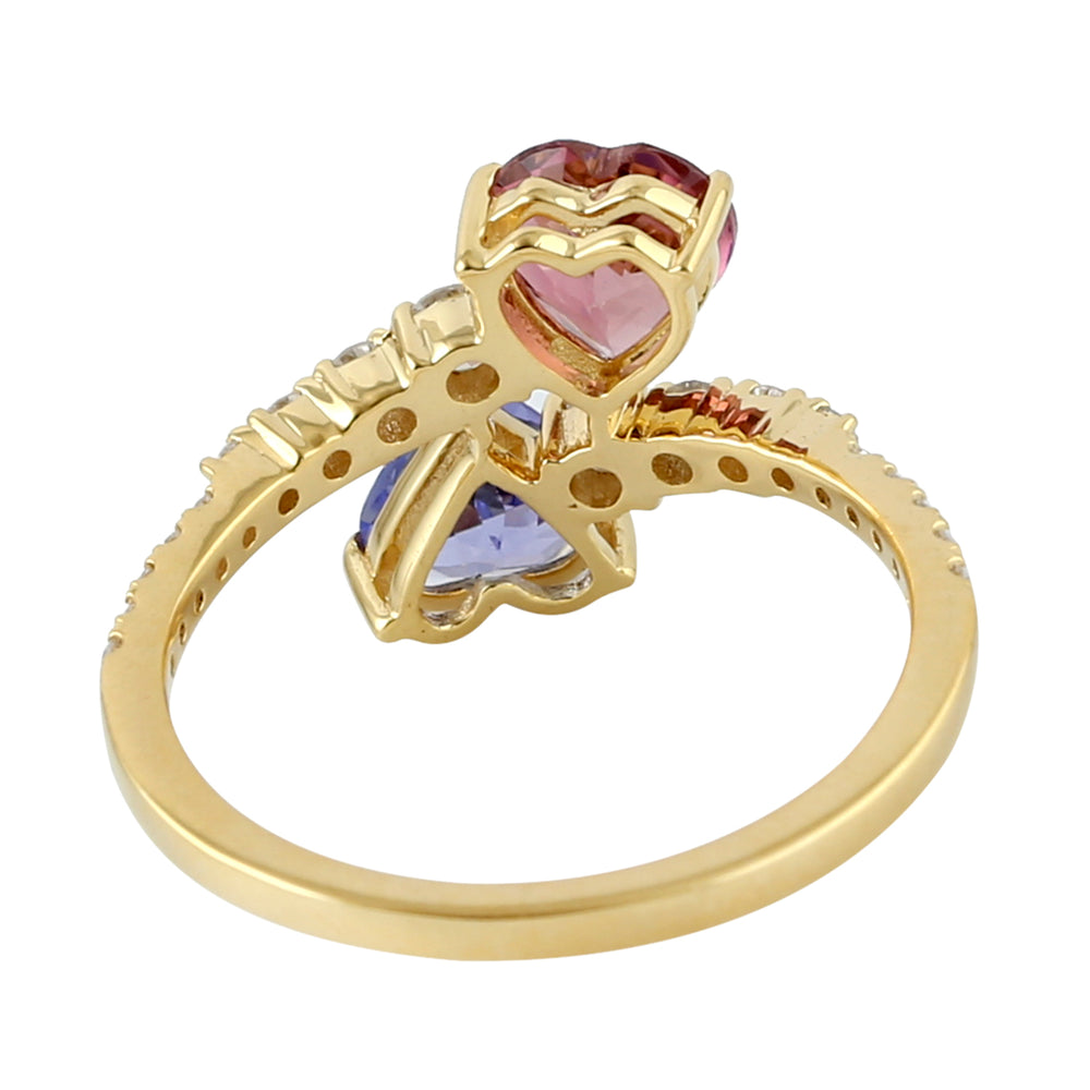 Tanzanite and Tourmaline Pave Diamond Heart Bypass Ring In Gold