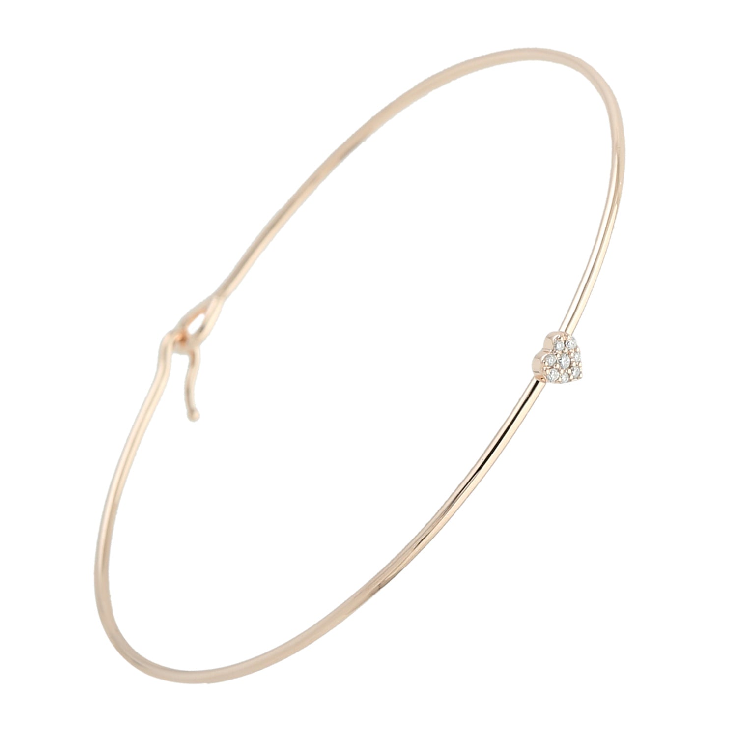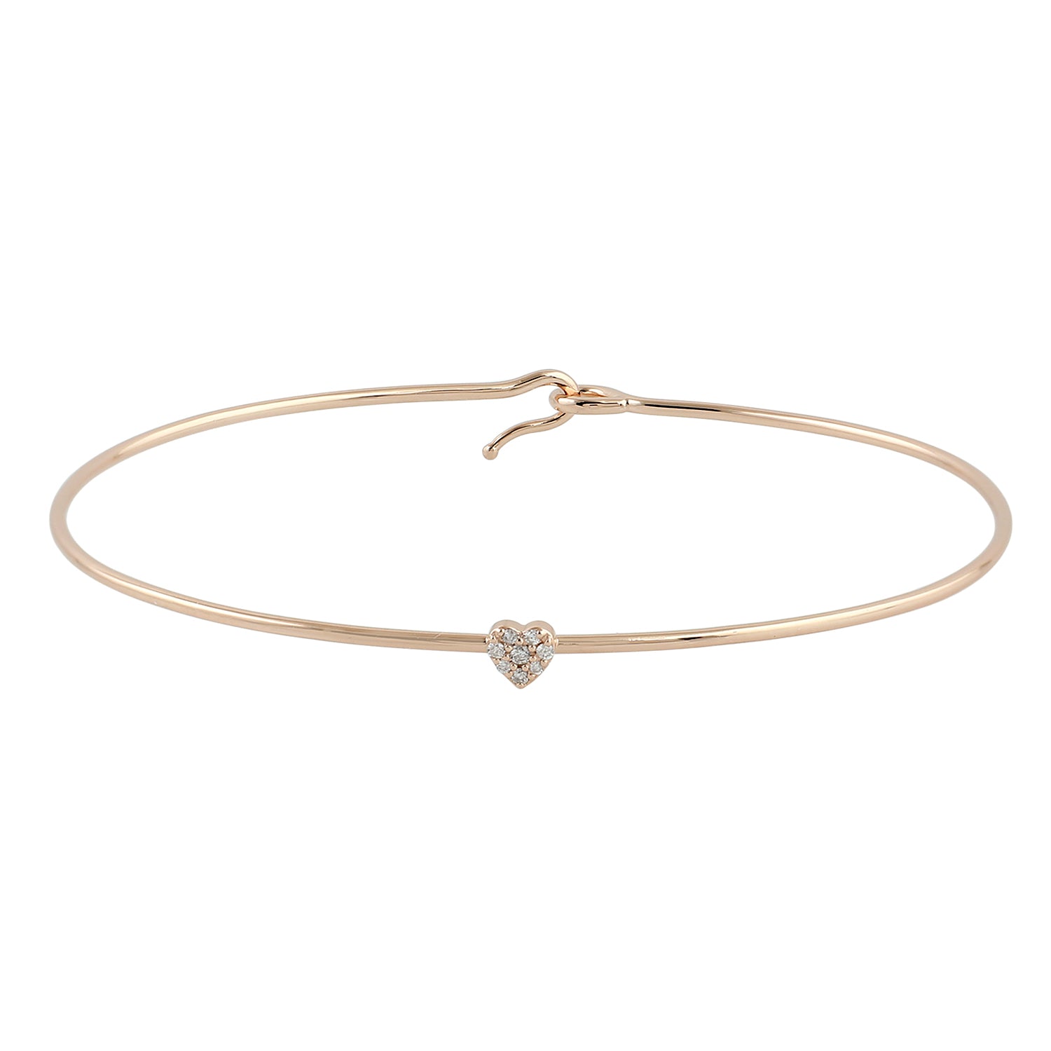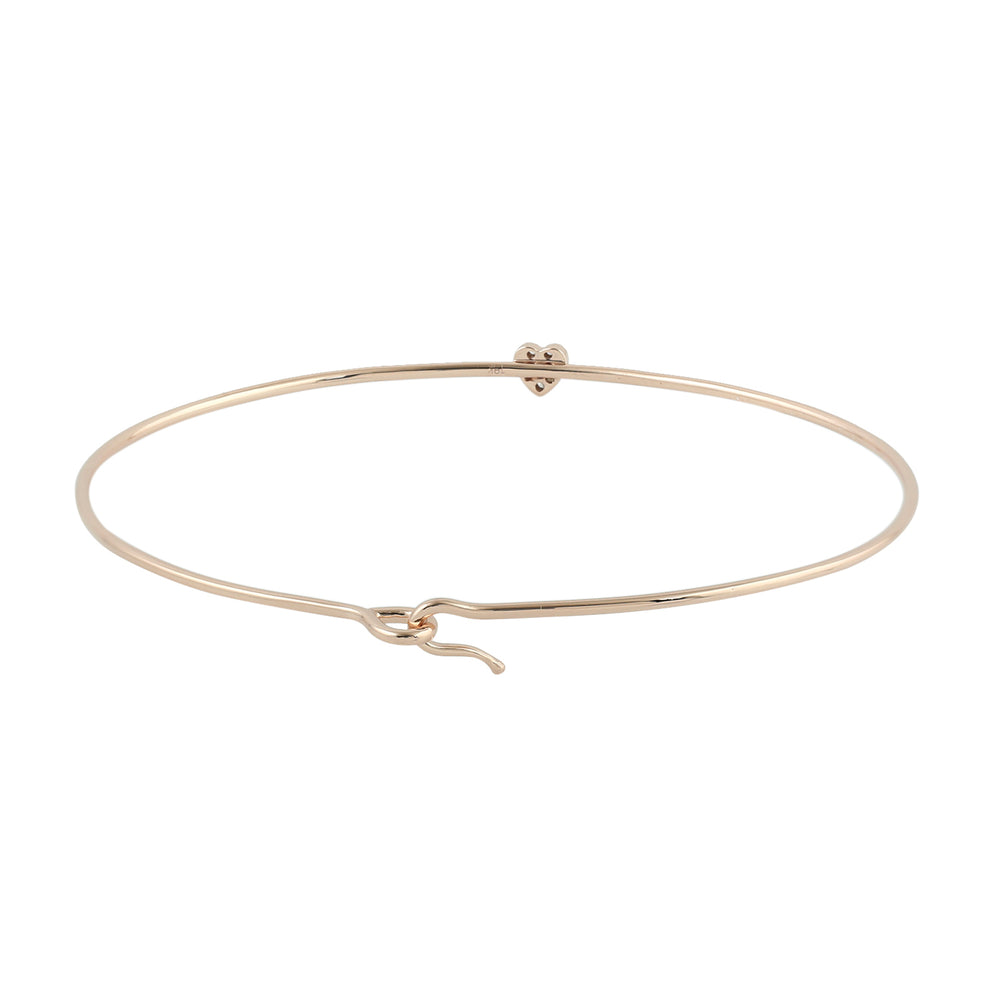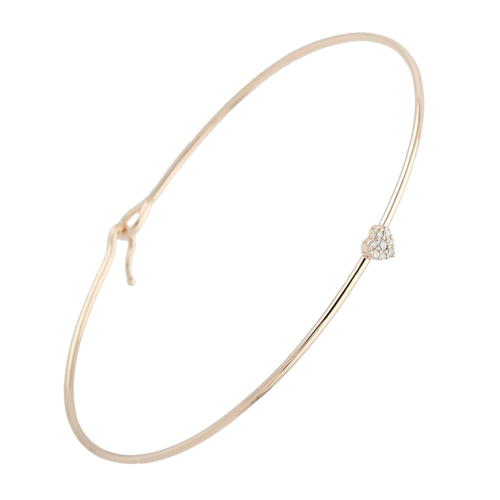 • 18K Rose Gold Pave Diamond Heart Bangle Bracelet For Her