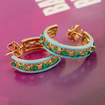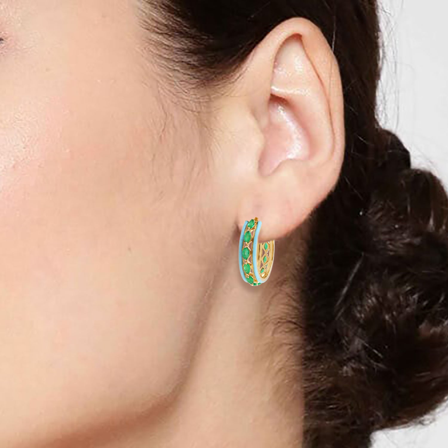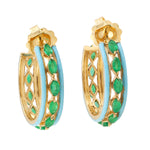 Marquise Cut Emerald Enamel Hoop Earrings in 18K Yellow Gold – Elegant Gemstone Jewelry for Her