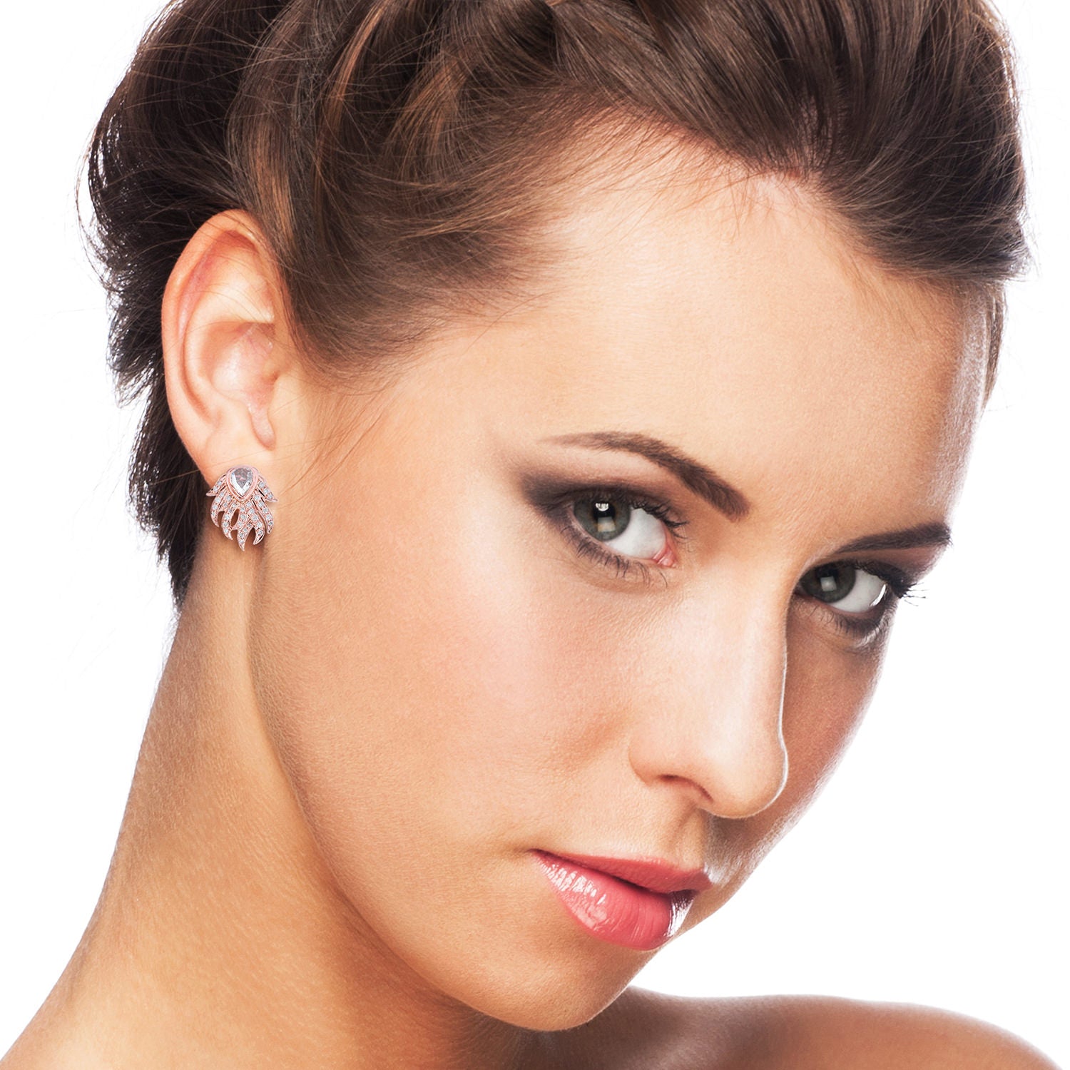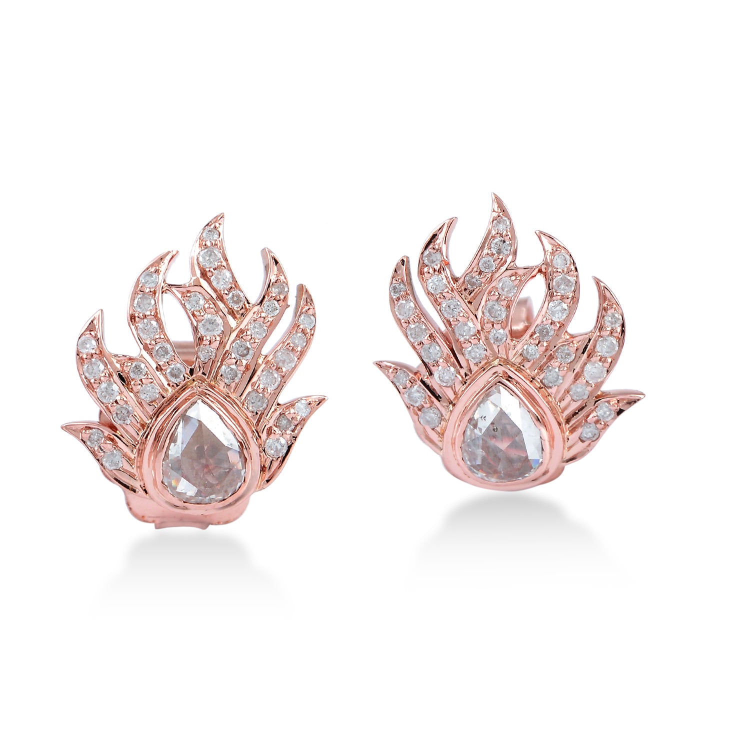 18K Rose Gold Bezel Ice Diamond Designer Stud Earrings For Her