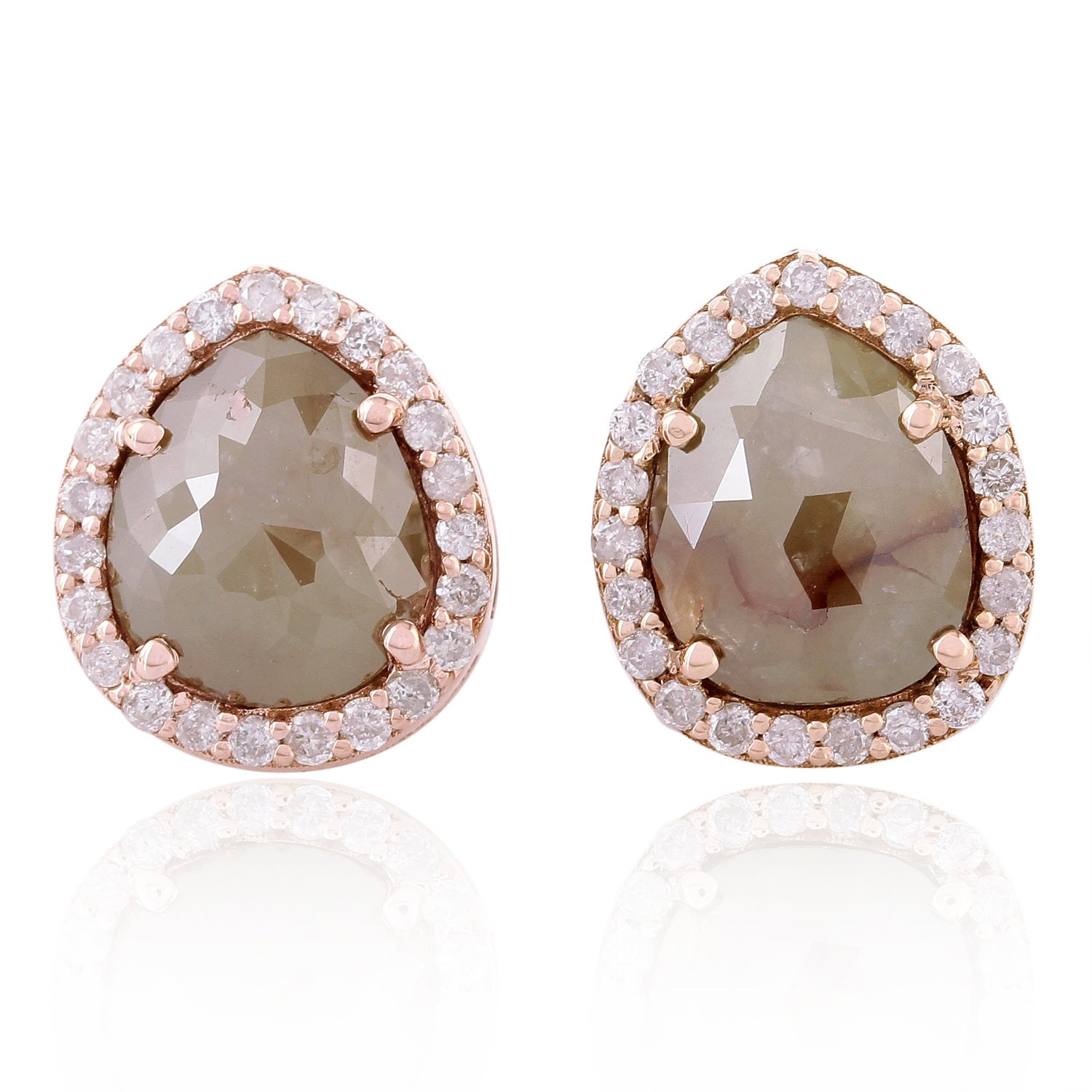 • 18K Rose Gold Prong Ice Diamond Minimal Stud Earrings For Her Birthday Gifts