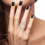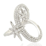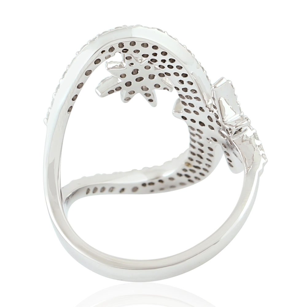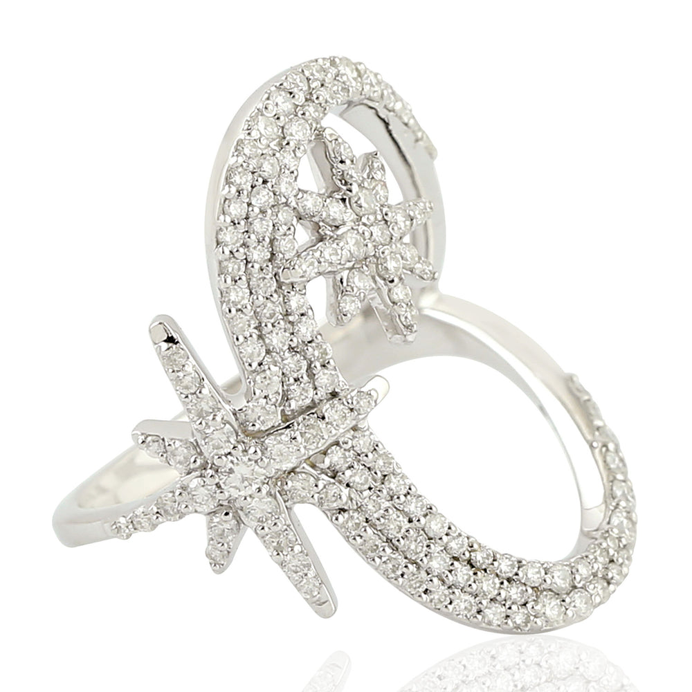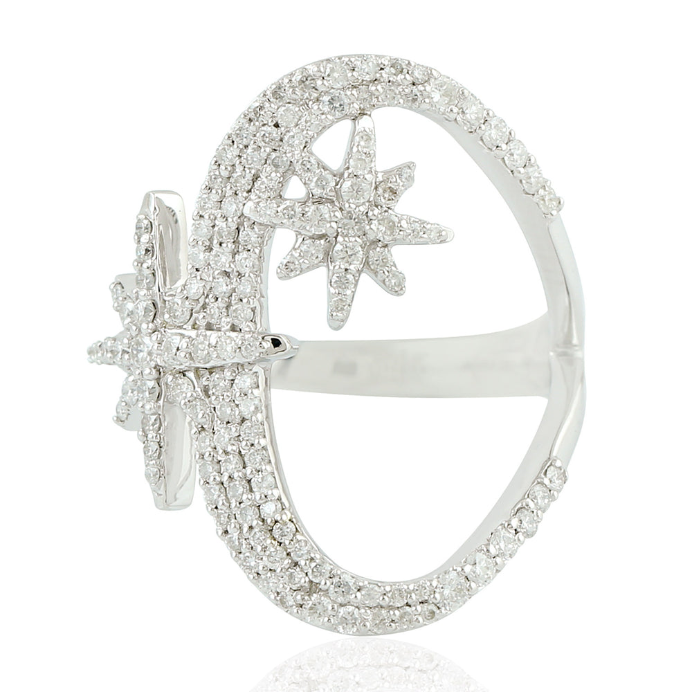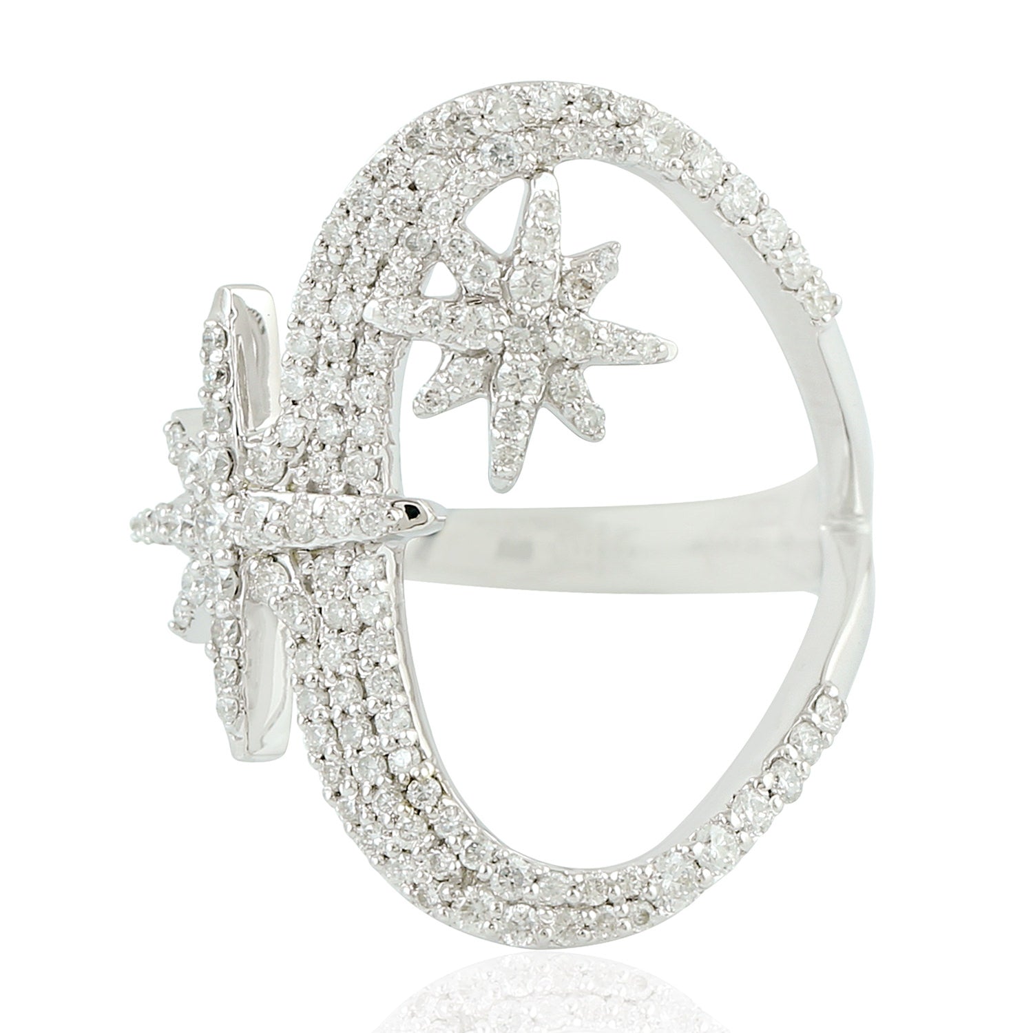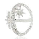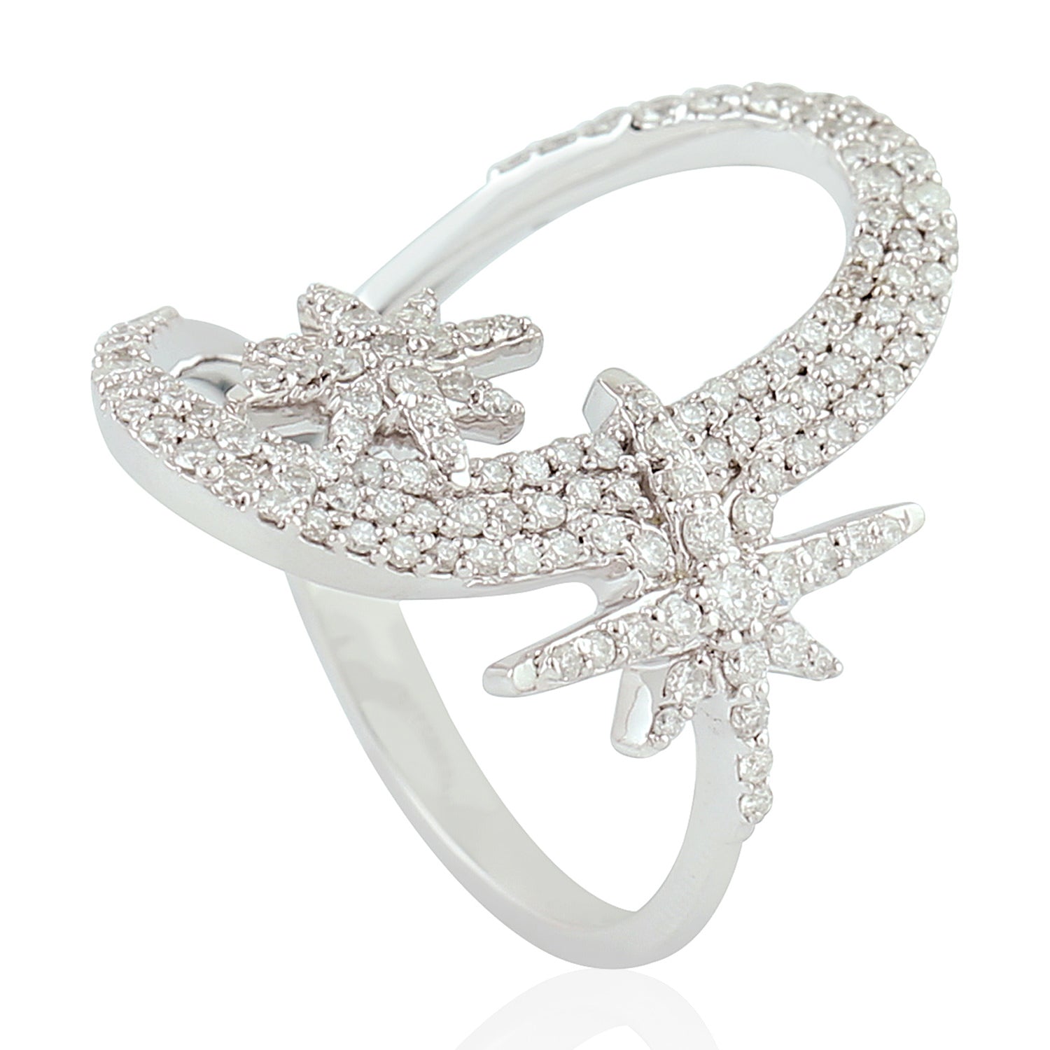 14K White Gold Pave Diamond Crescent Moon & Star Ring For Her