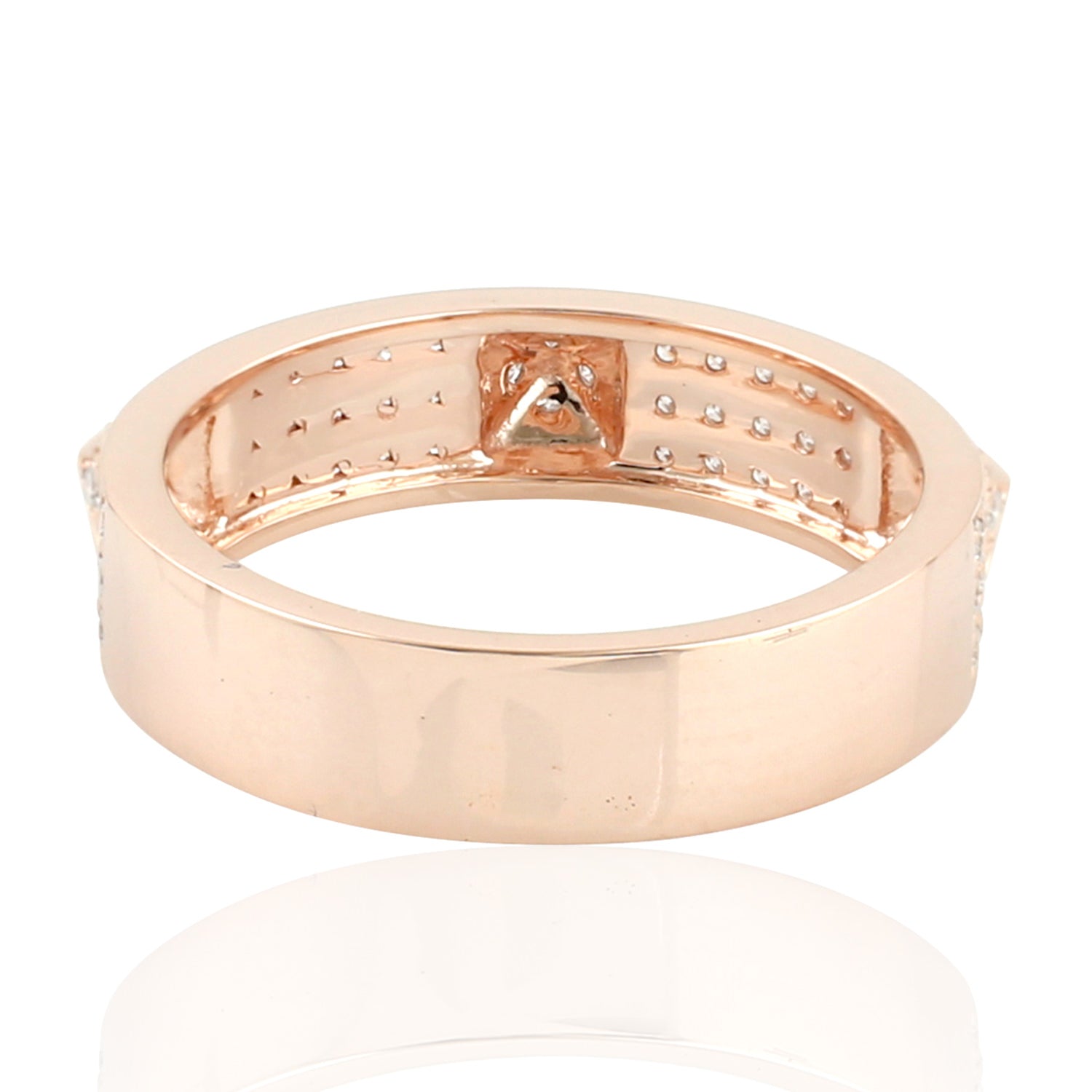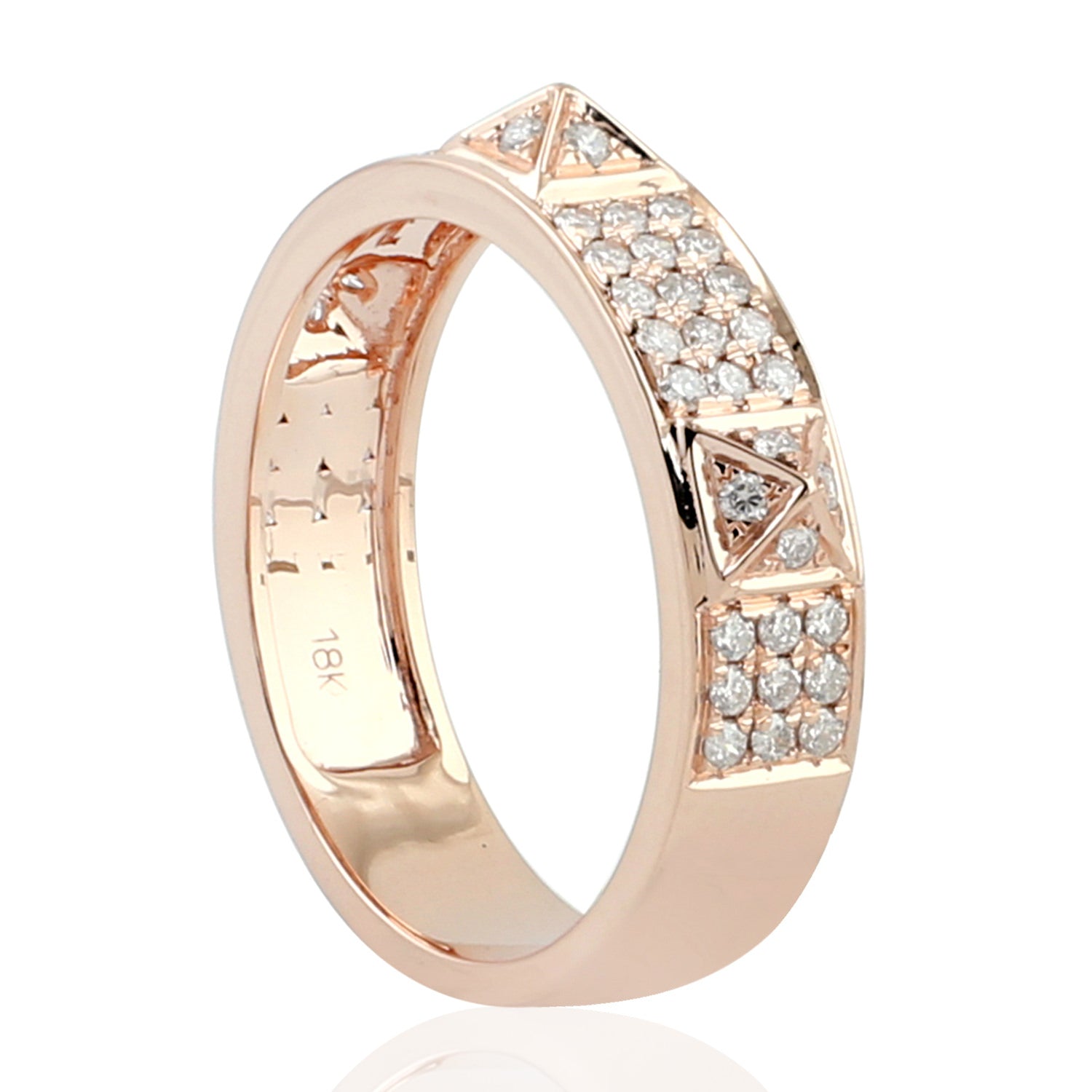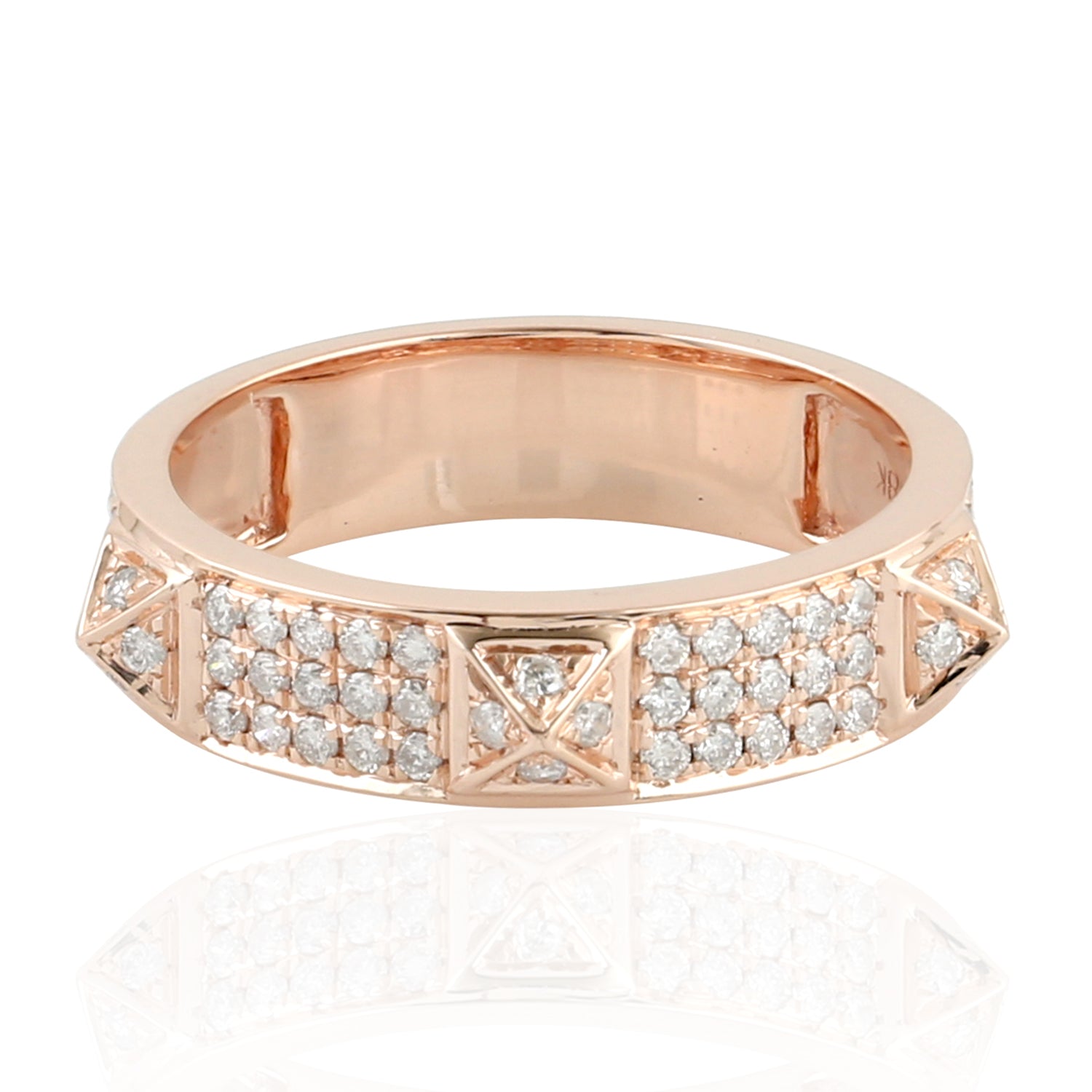 18K Rose Gold Pave Diamond Handmade Pyramid Band Ring