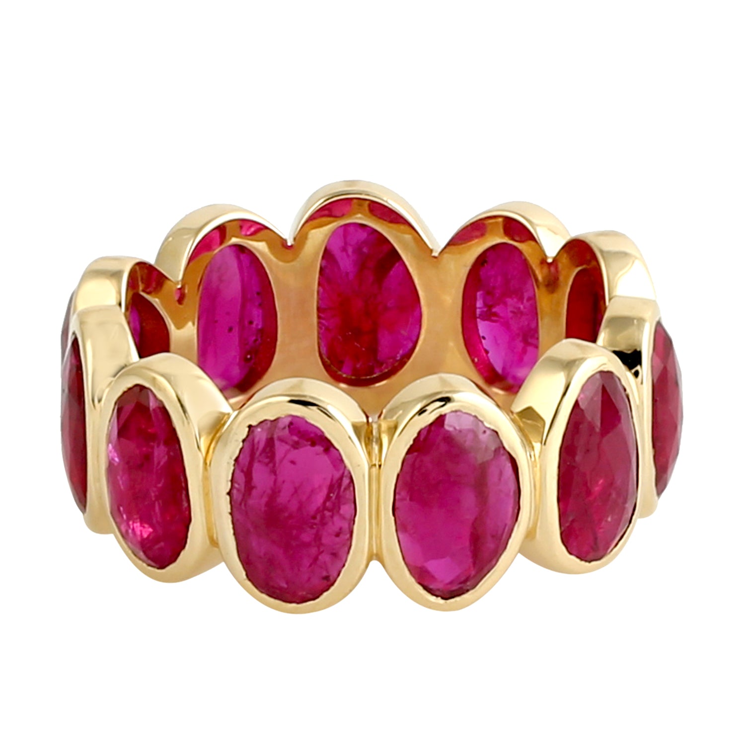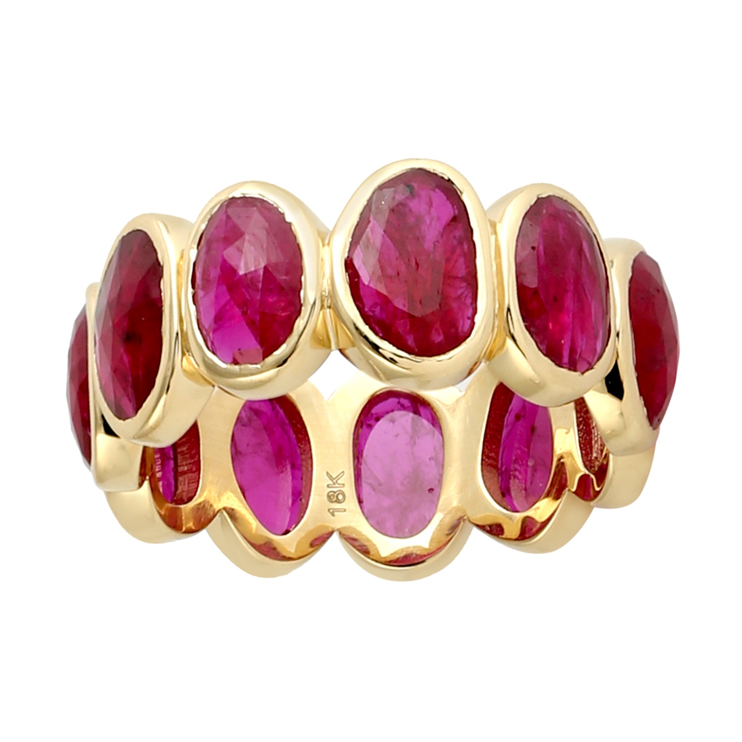 Bezel Ruby Gemstone July Birthstone Full Eternity Band Ring In 18k Yellow Gold
