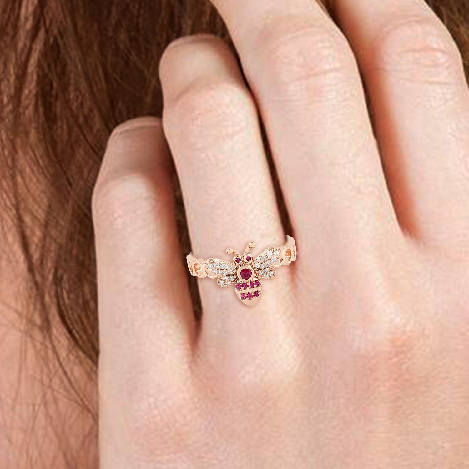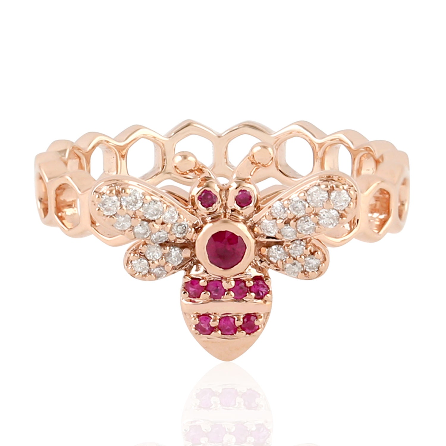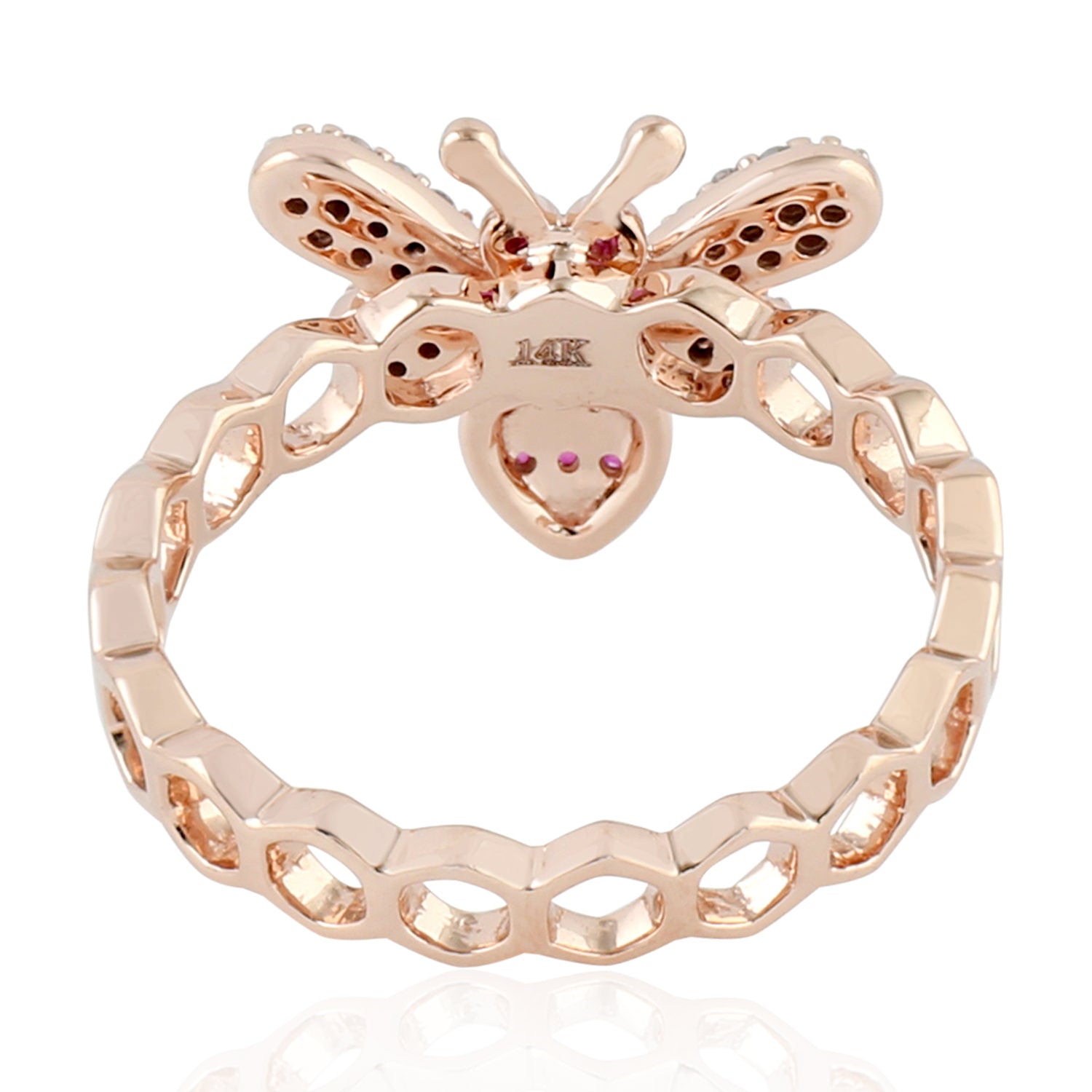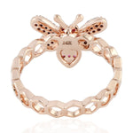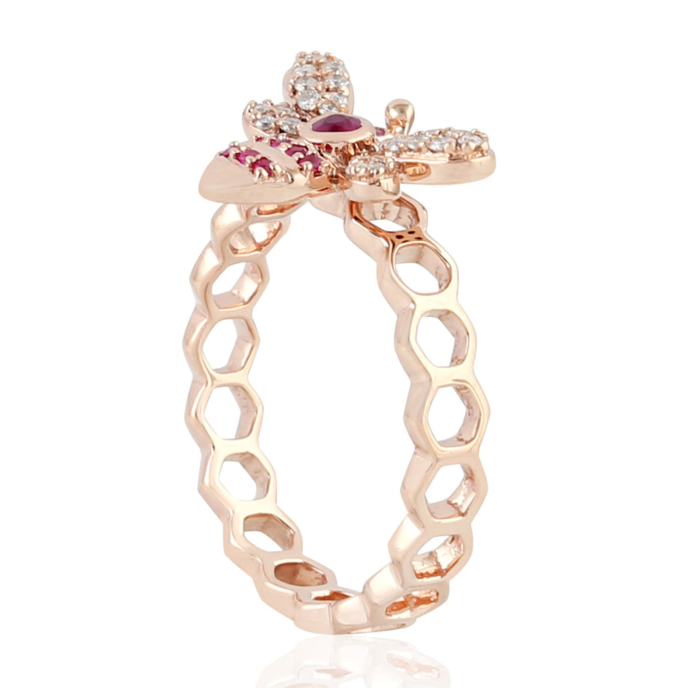Ruby July Birthstone Pave Diamond Honeybee Band Ring In 14K Rose Gold