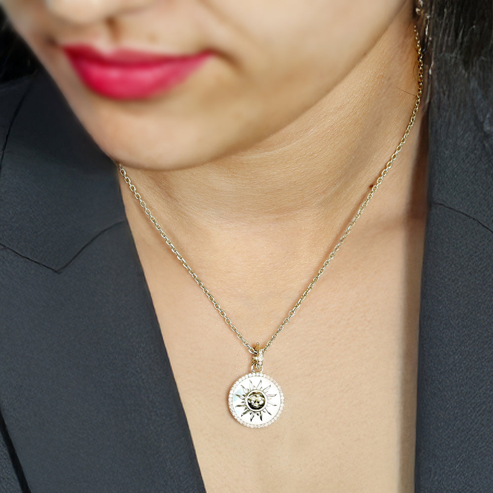 18K Yellow Gold Fancy MOP Pave Diamond Sunlight Pendant