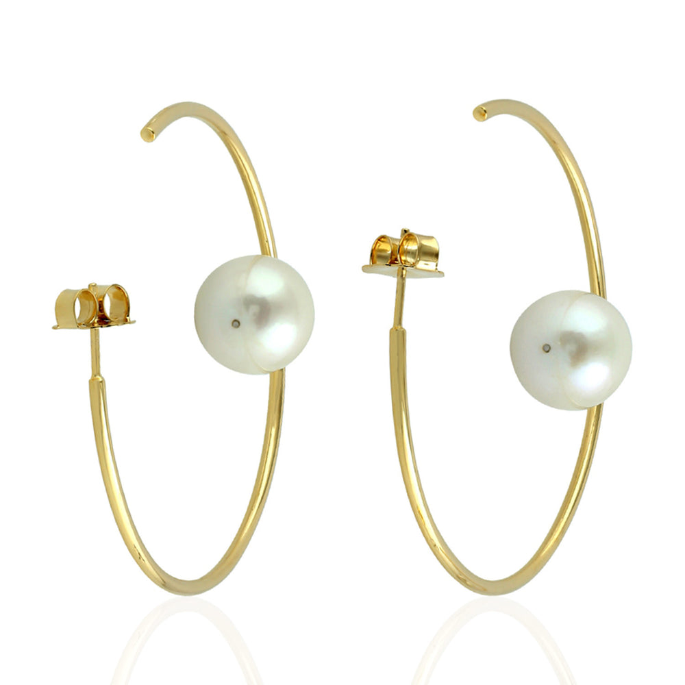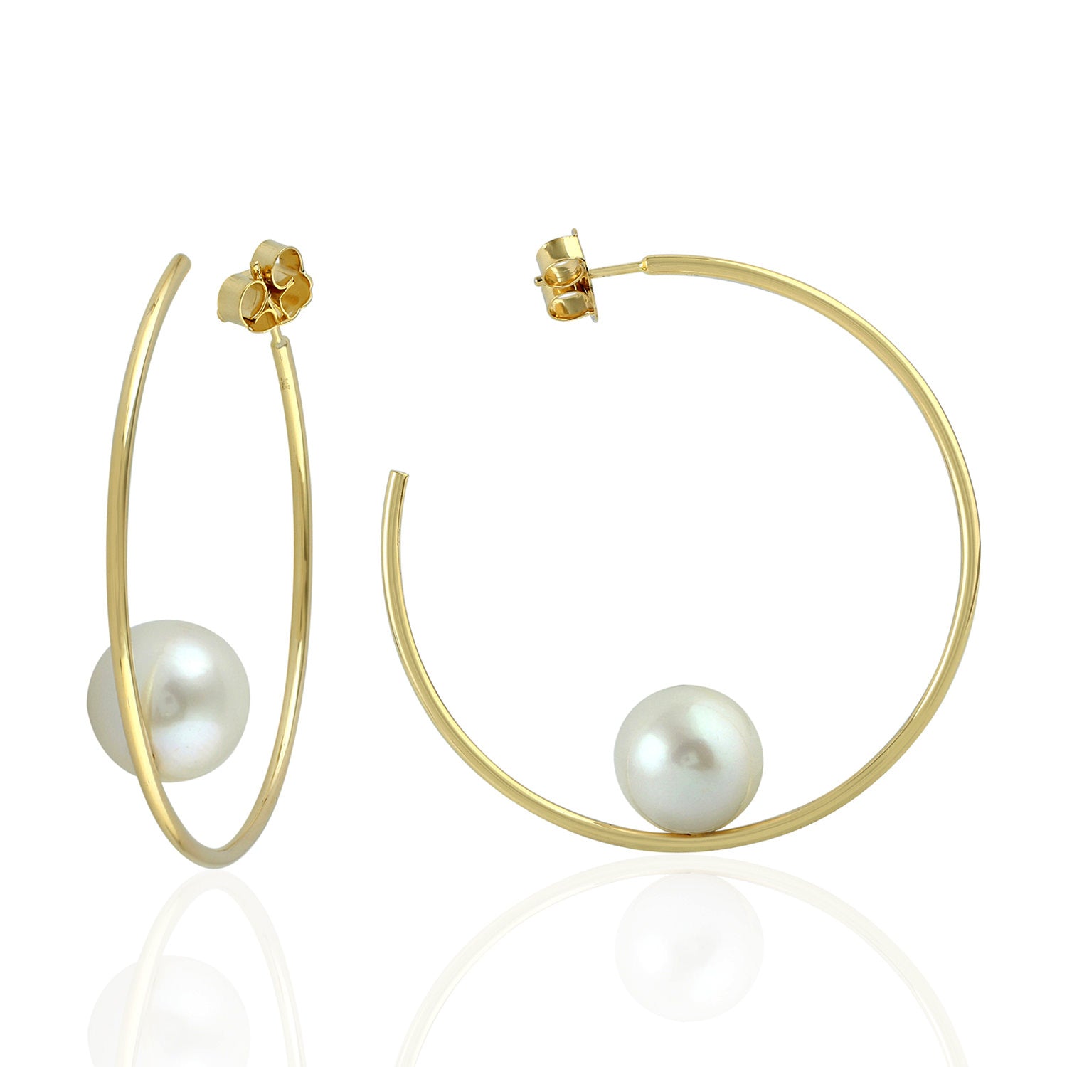 • Pearl South Sea Gemstone In 14k Yellow Half Hoop Earrings
