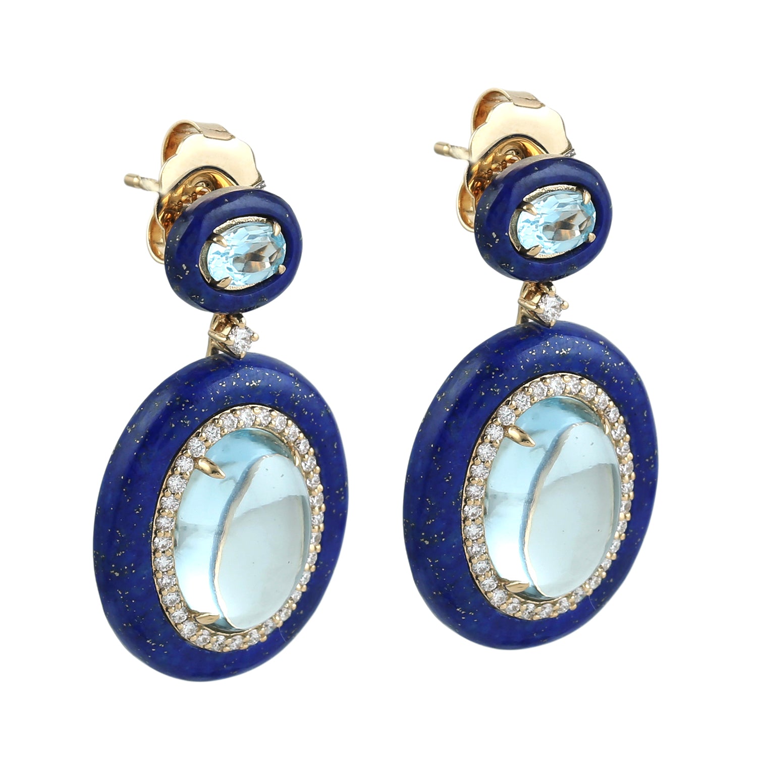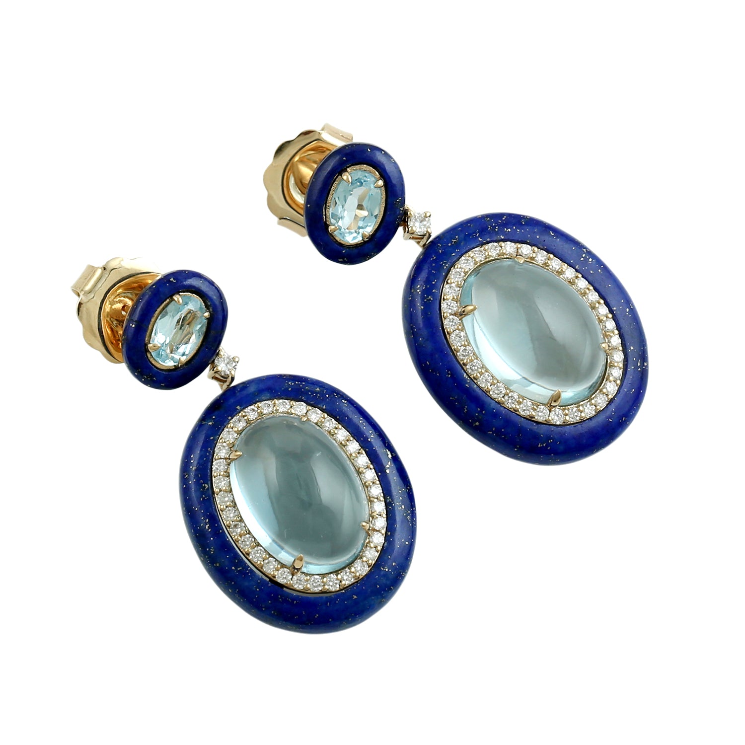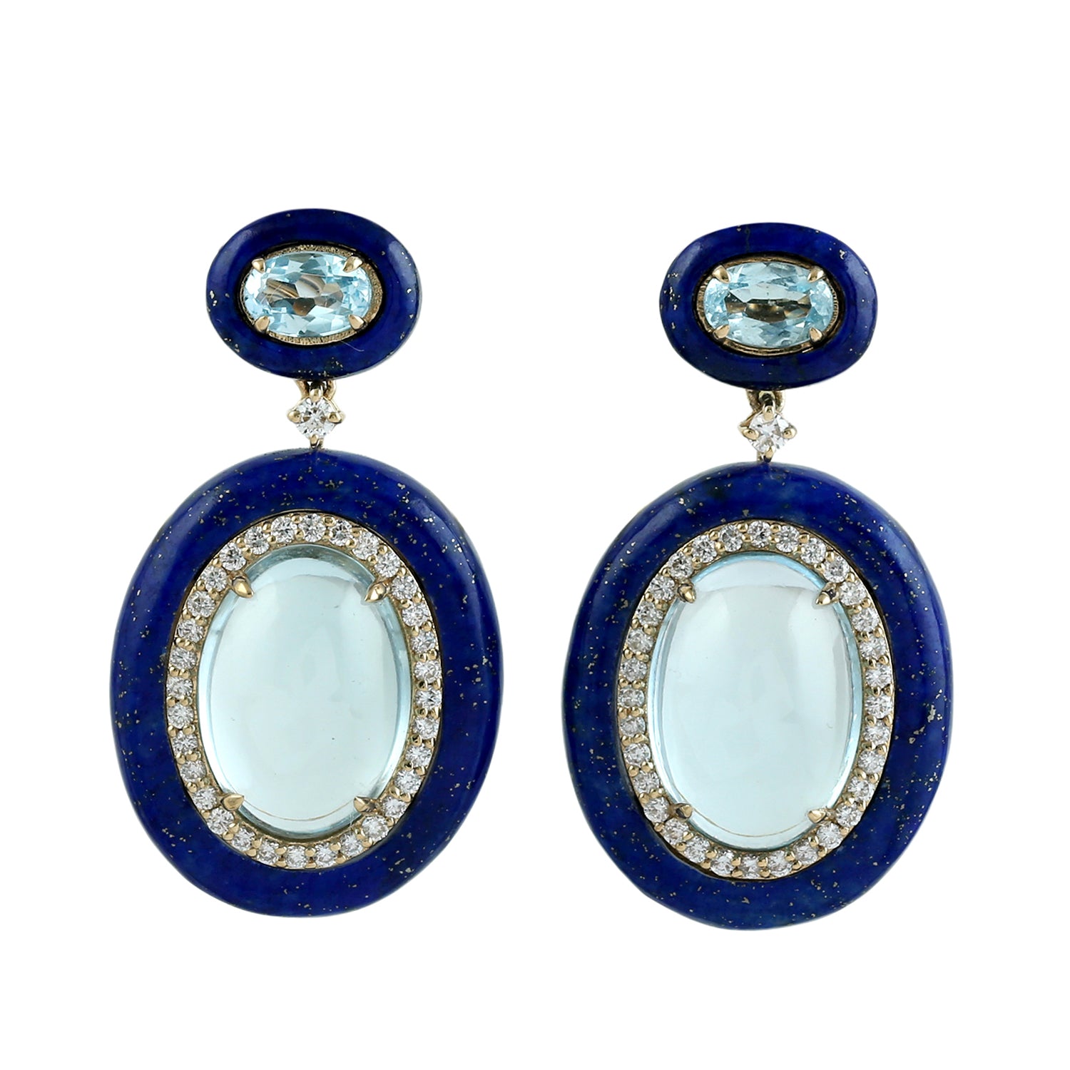 Lapis Lazuli & Oval Blue Topaz Diamond Drop Earrings in 18K Yellow Gold