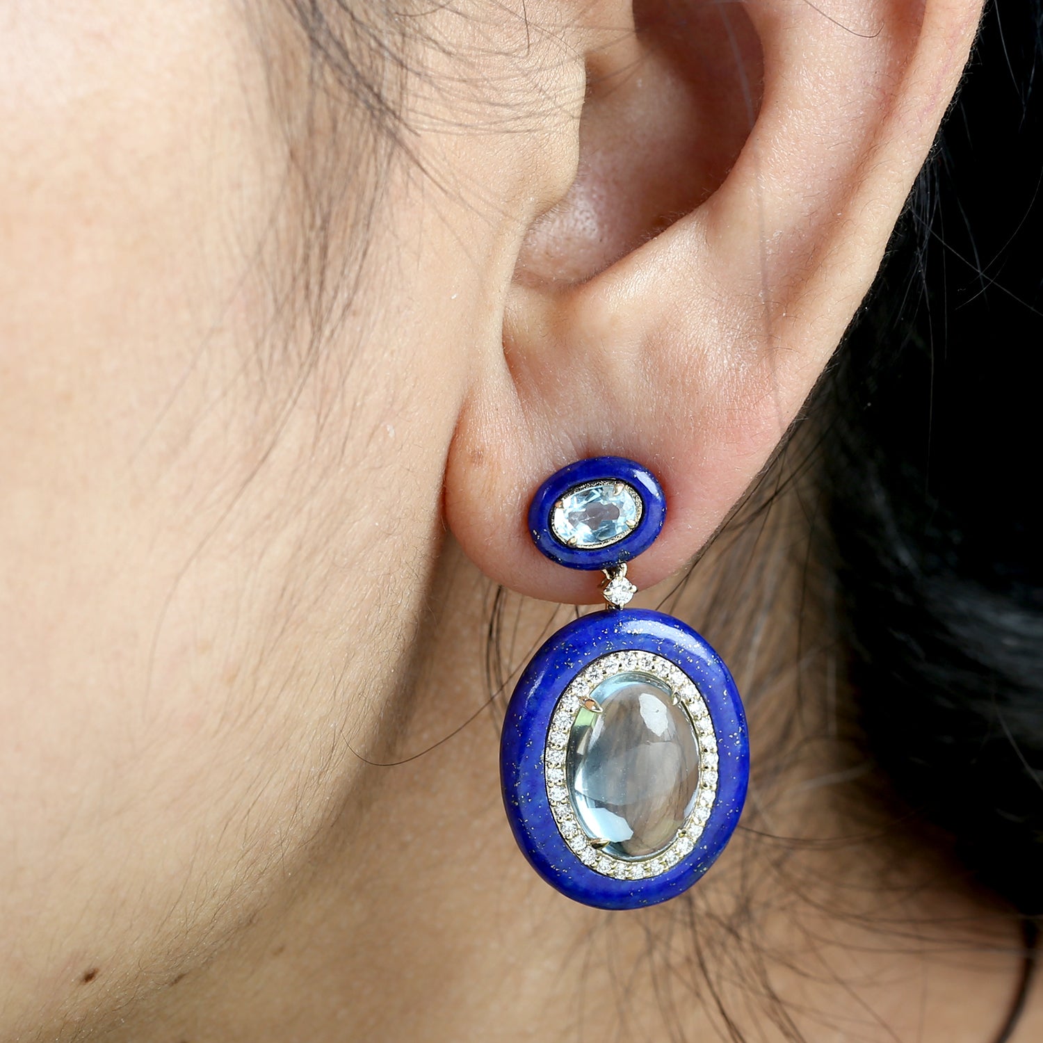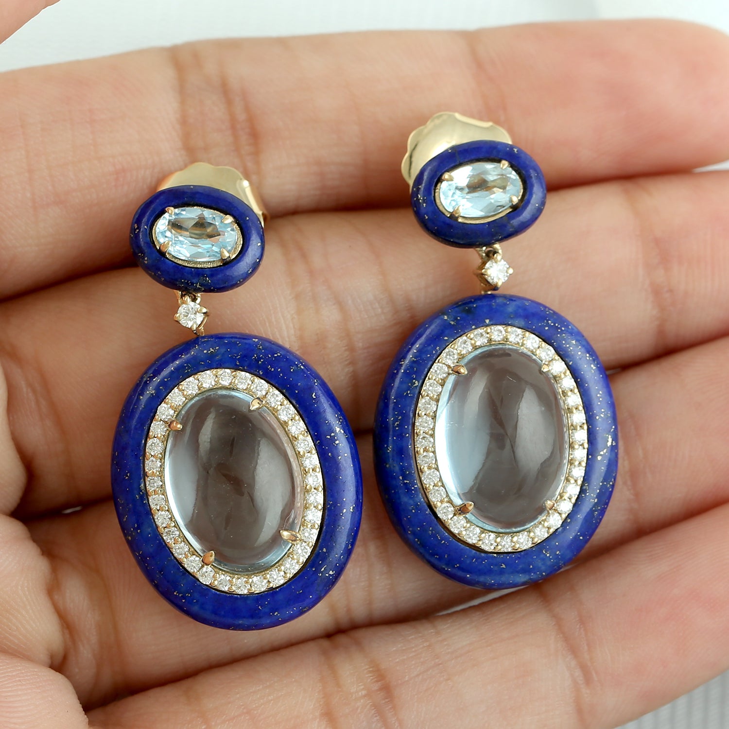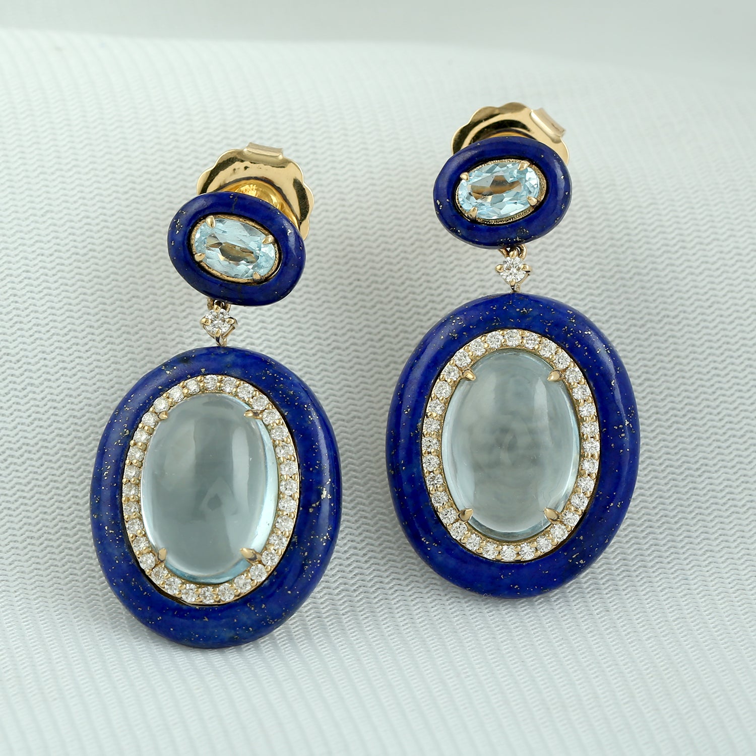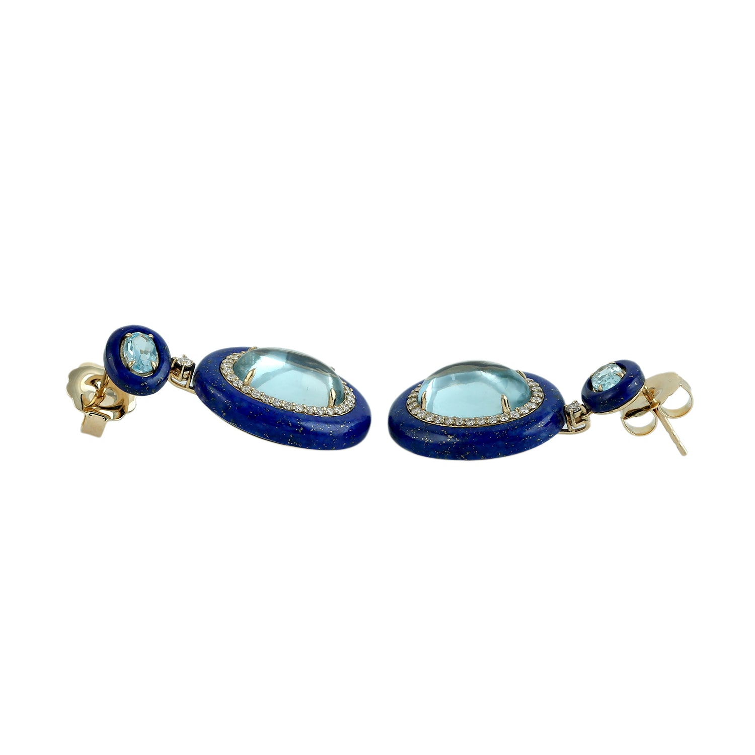 Lapis Lazuli & Oval Blue Topaz Diamond Drop Earrings in 18K Yellow Gold