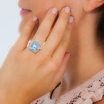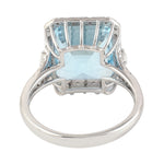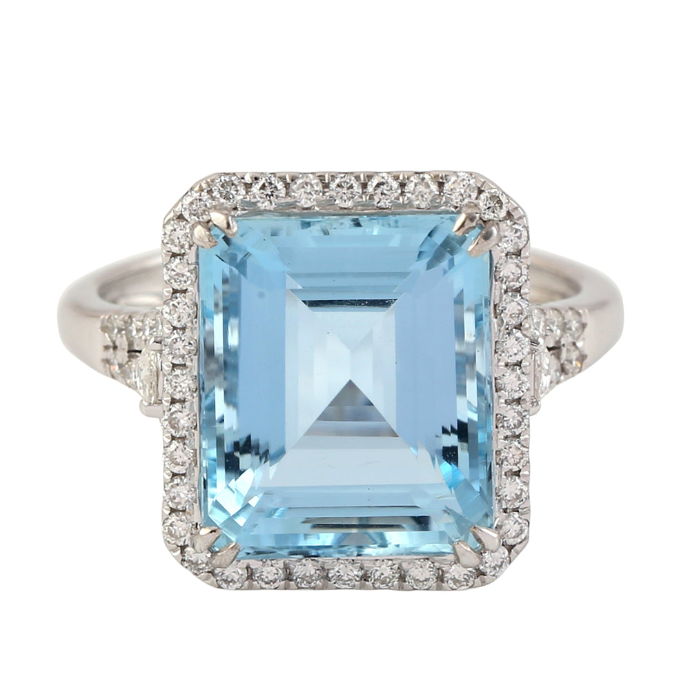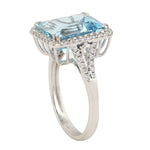 Emerald Cut Aquamarine Pave Diamond Solitaire Ring In 18k White Gold