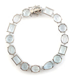 Faceted Aquamarine Prong Set 18k White Gold Link Chain Designer Bracelet For Birthday Gift