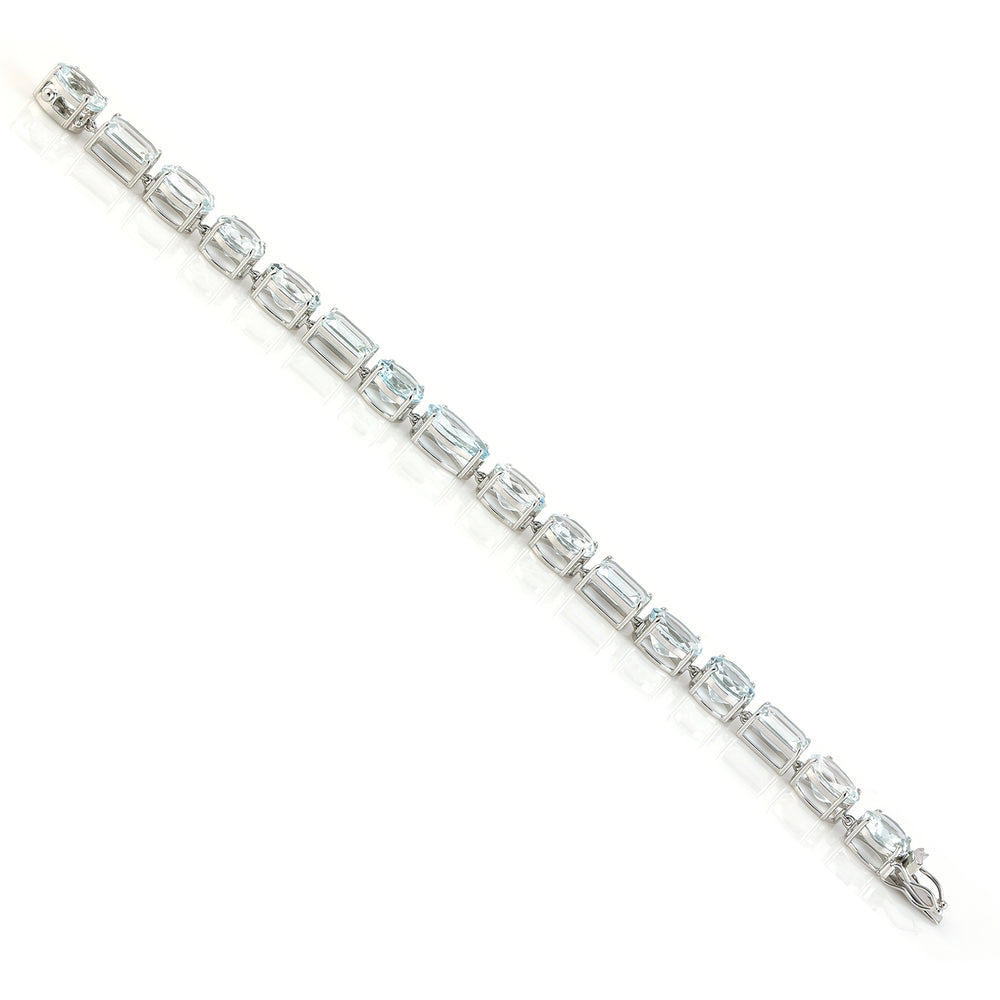 • Faceted Aquamarine Prong Set 18k White Gold Link Chain Designer Bracelet For Birthday Gift