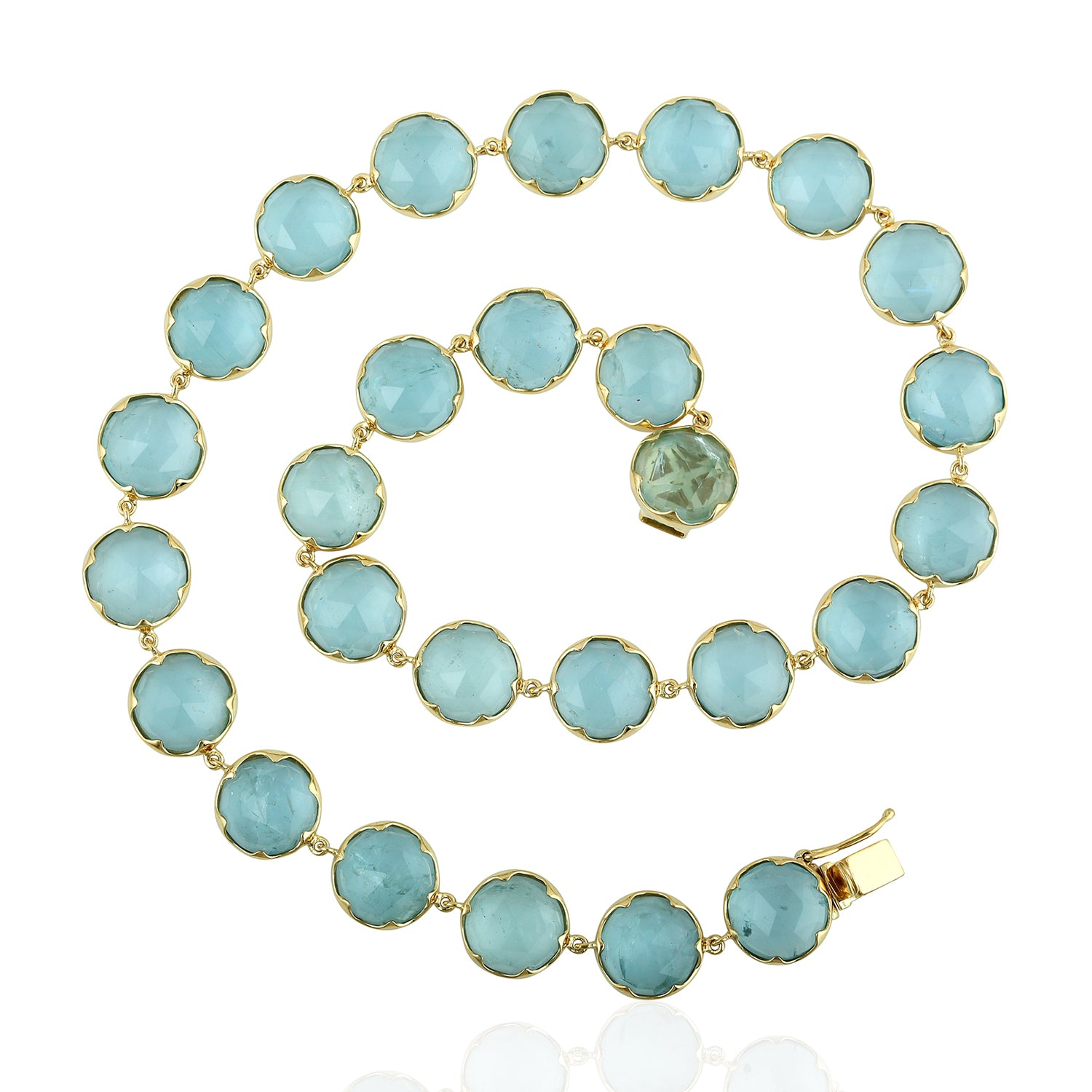 Natural Aquamarine 18k Yellow Gold Elegant Beads Necklace Wedding For her On Sale