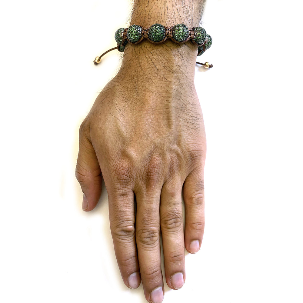 Pave Diamond Beaded Bead Ball Macramé Bracelet In 14k White Gold