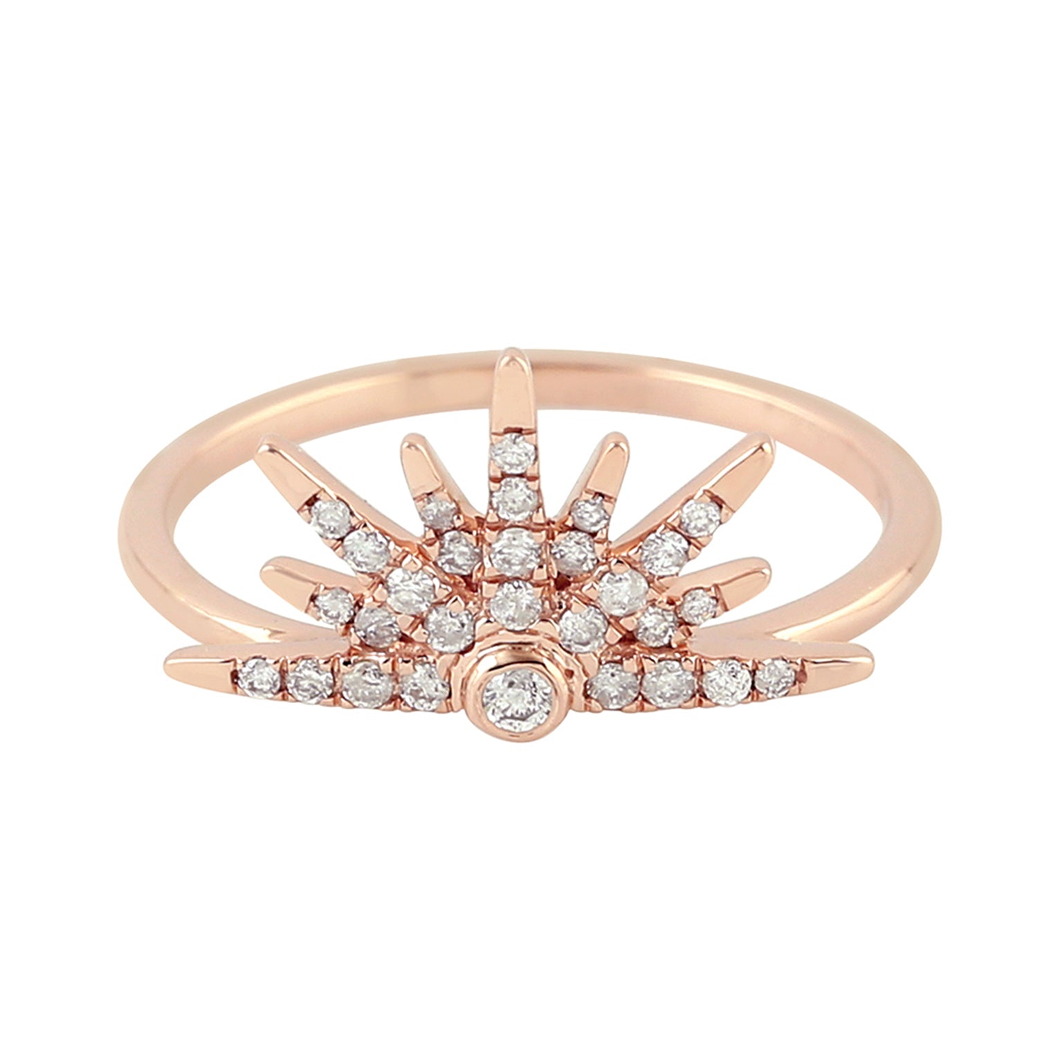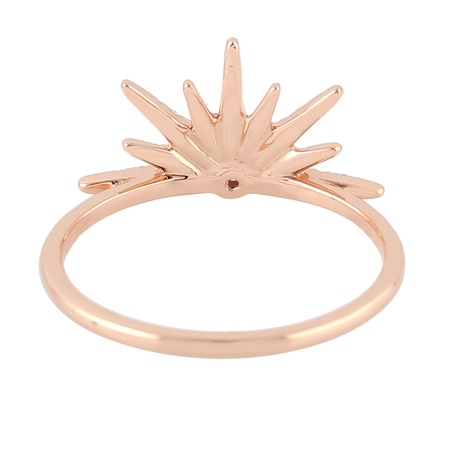 14K Rose Gold Pave Natural Diamond Starburst Design Ring For Christmas Gifts