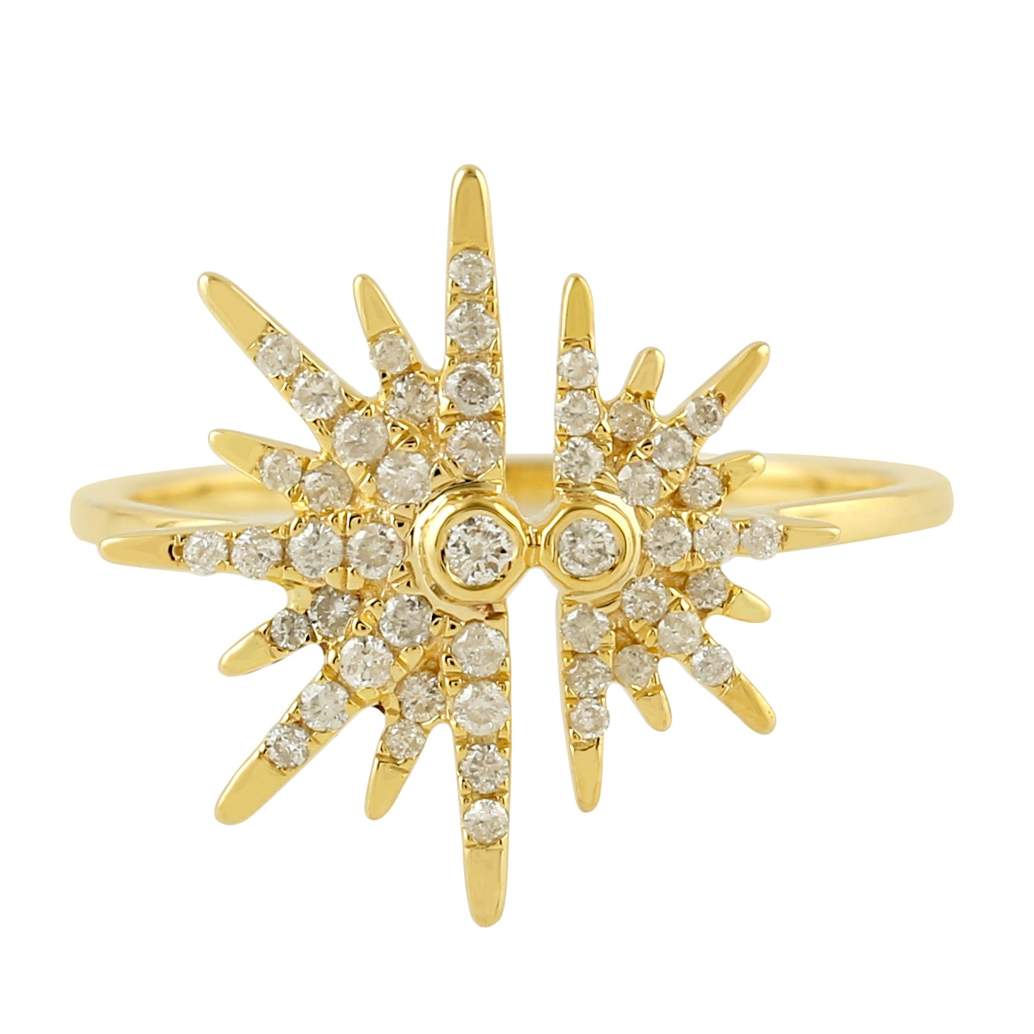 14K Yellow Gold Micro Pave Beautiful Sunburst Design Ring