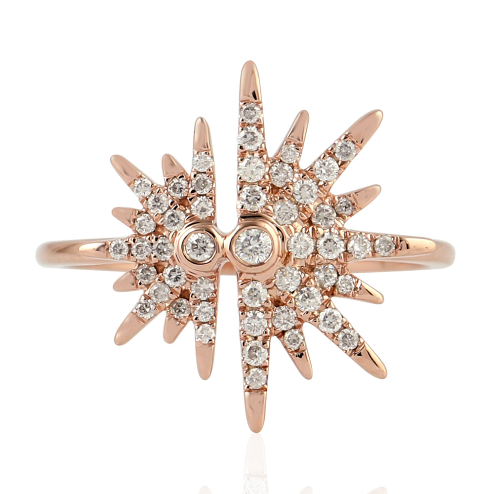 Micro Pave Diamond In 18k Rose Gold Sunburst Design Ring