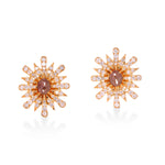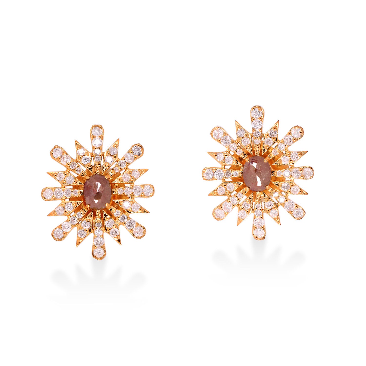 • 18K Yellow Gold Sunburst Stud Earrings Featuring Oval Cut Ice Diamonds