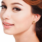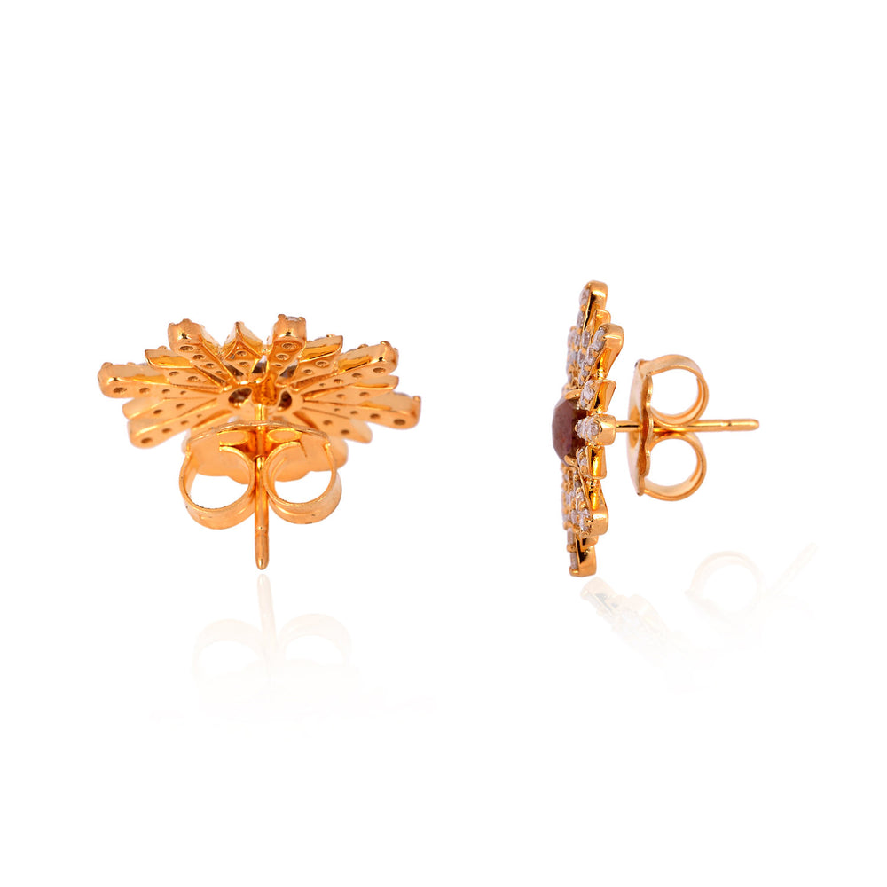 18K Yellow Gold Sunburst Stud Earrings Featuring Oval Cut Ice Diamonds