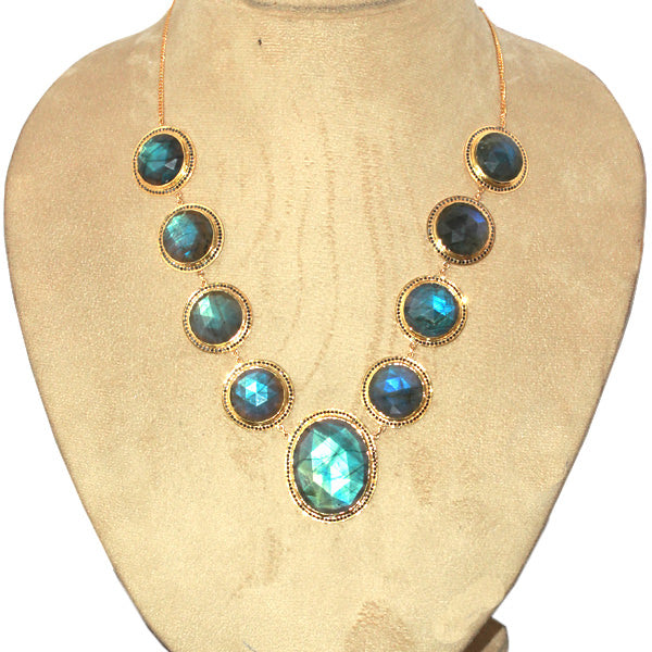 Labradorite Gemstone Pave Diamond Choker Necklace In 18k Yellow Gold