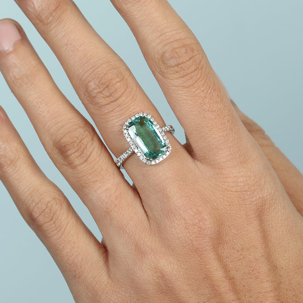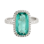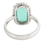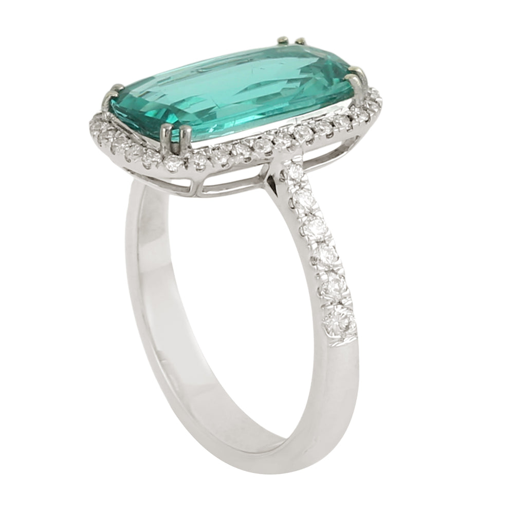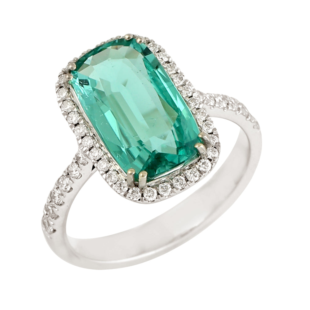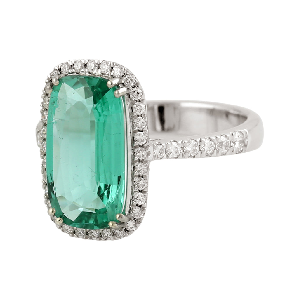 Fancy Cut Green Tourmaline Pave Diamond Beautiful Ring In 14K White Gold