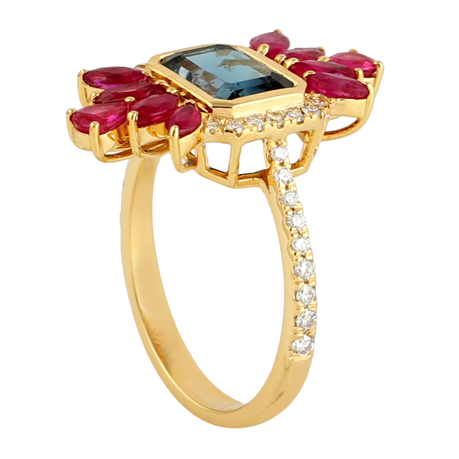 Ruby & London Blue Topaz Gemstone Pave Diamond Ring in 18k Yellow Gold – Elegant Fine Jewelry for Her
