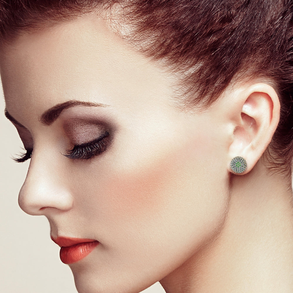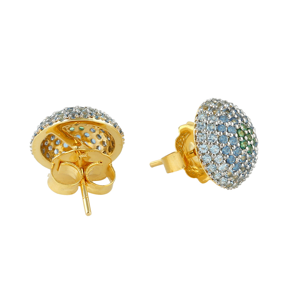 Blue Topaz Pave Tsavorite Gemstone Stud Earrings In 14K White Gold For Her