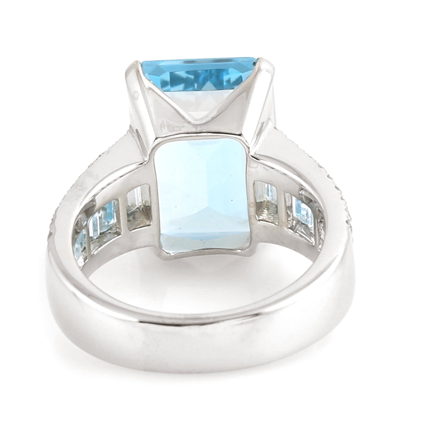 Rhombus Cut Blue Topaz Pave Diamond Solitaire Ring In In 18K White Gold