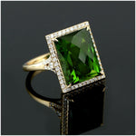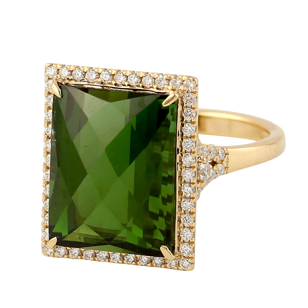 Square Green Tourmaline Pave Diamond Cocktail Ring in 18k Yellow Gold