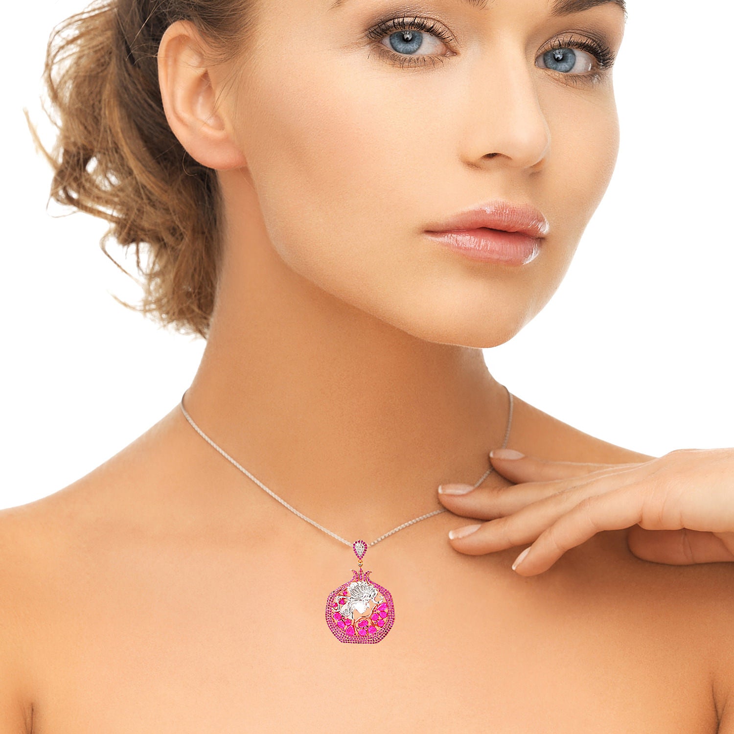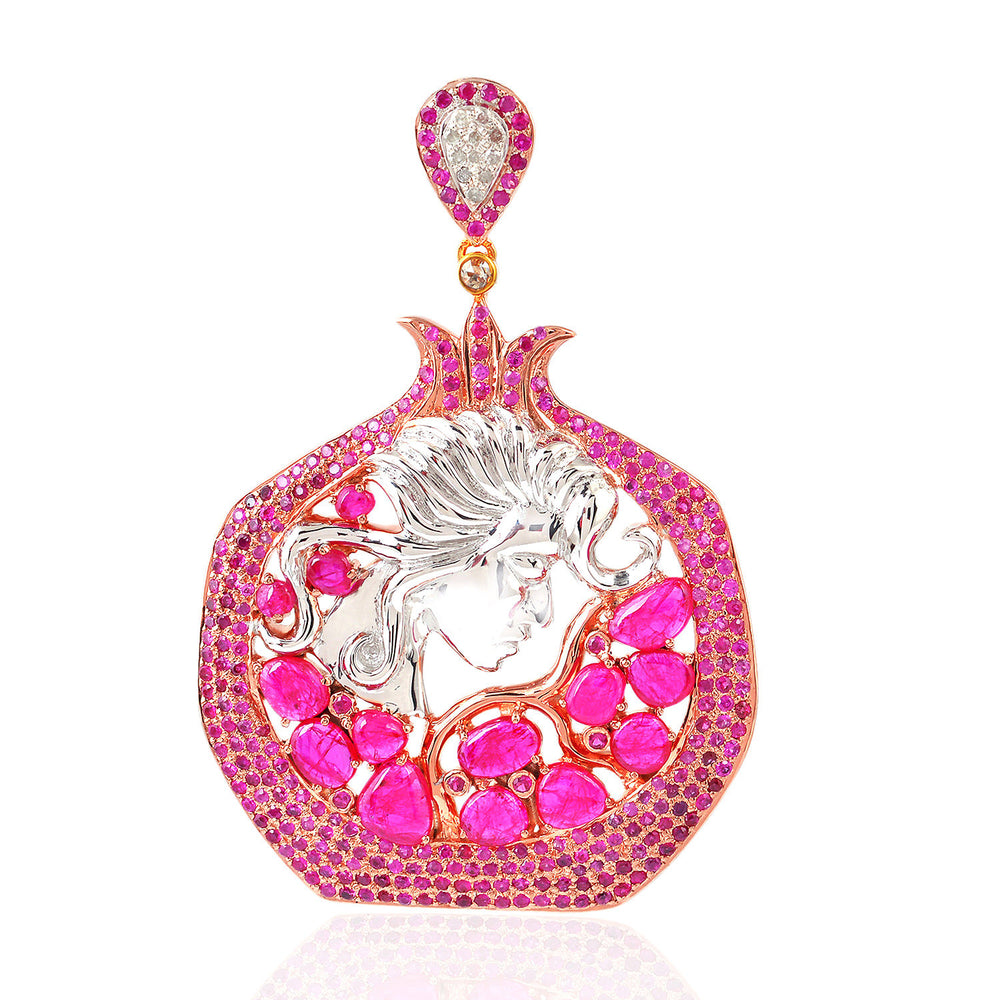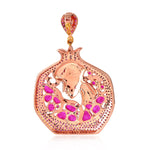 Slice Oval Ruby Pave Diamond Pomegranate Shape Pendant In Rose Gold 925 Silver