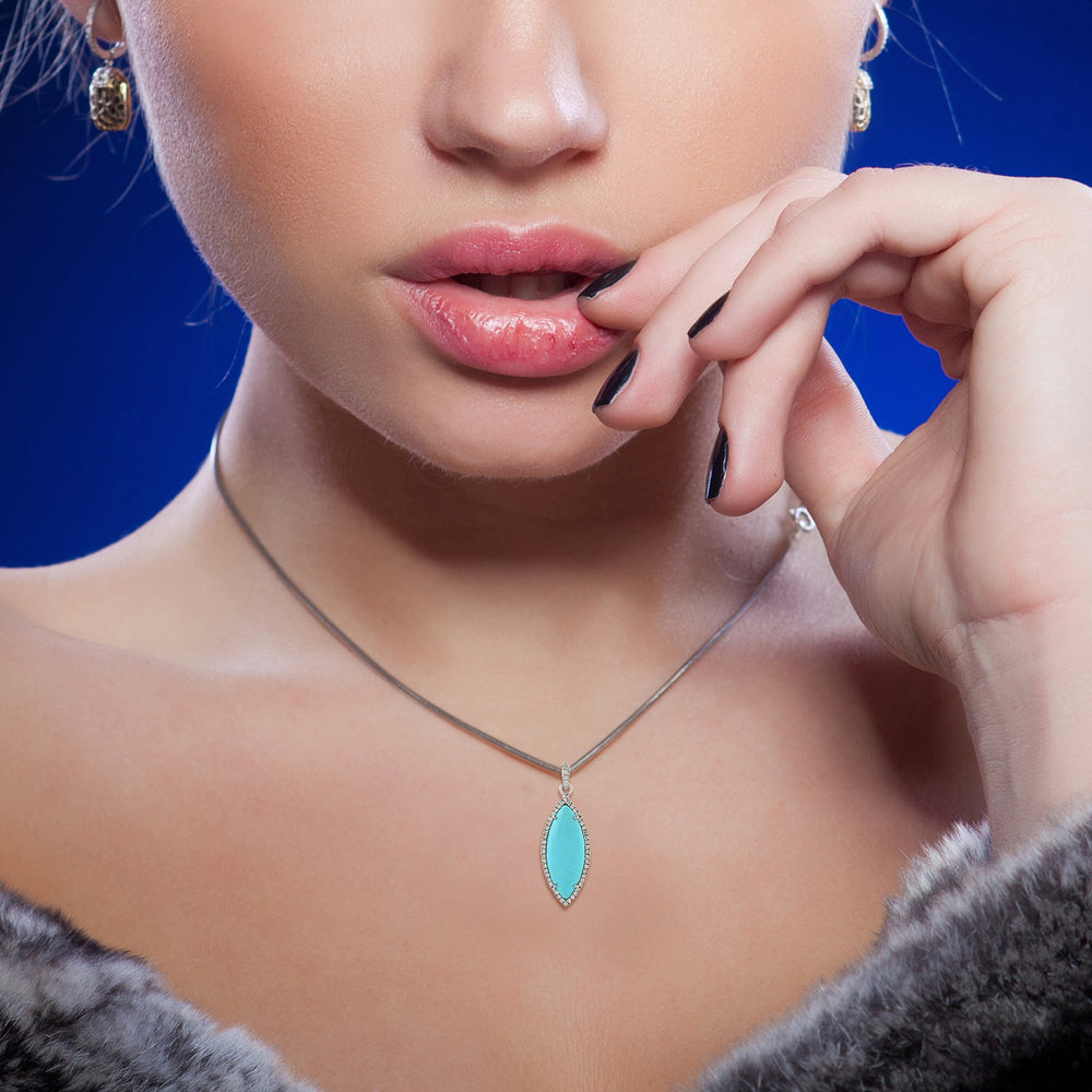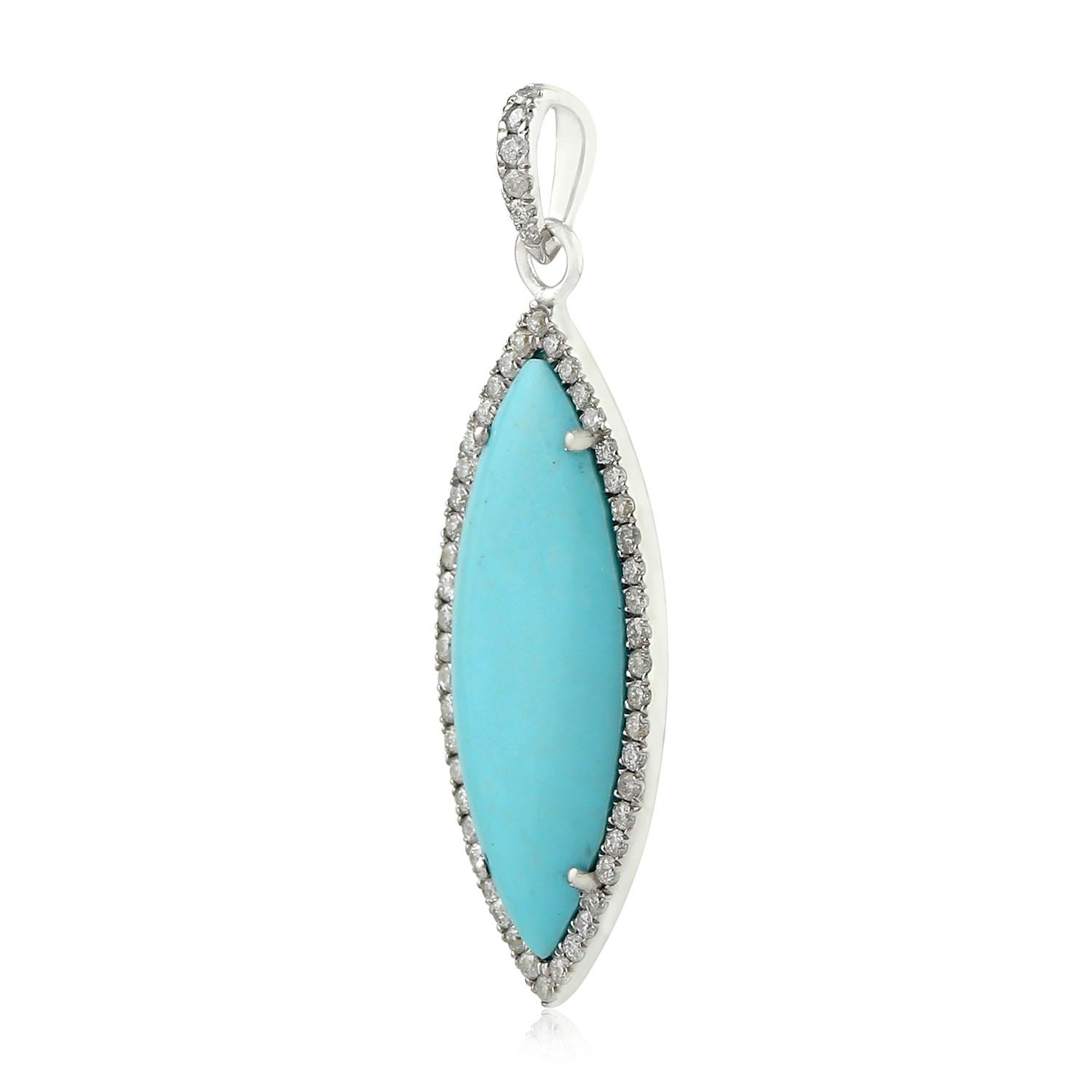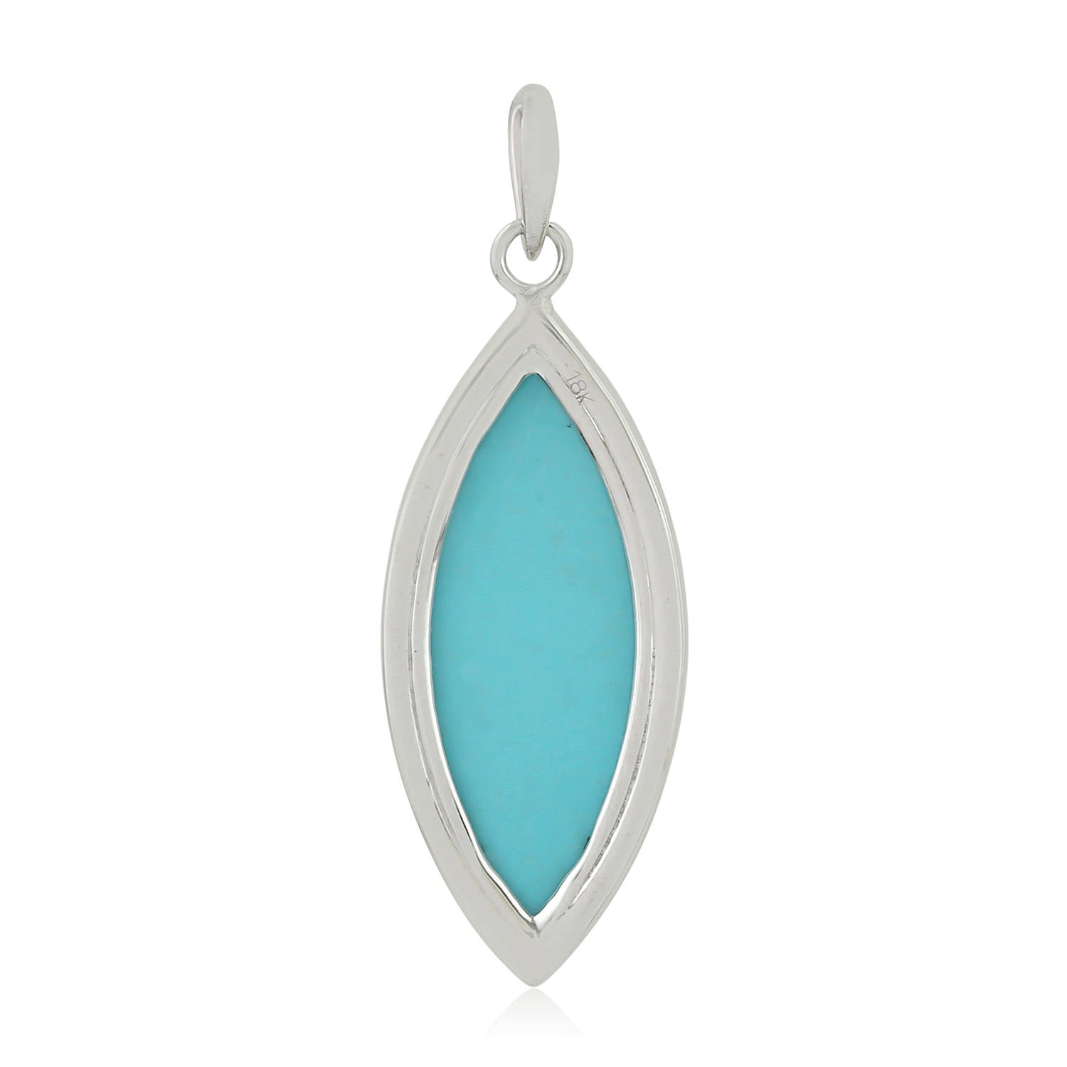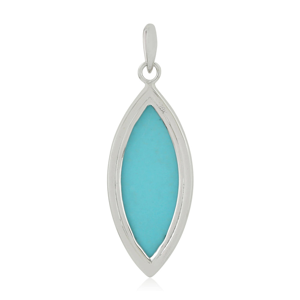 Marquise Cut Turquoise Micro Pave Diamond Designer Pendant In 18K White Gold