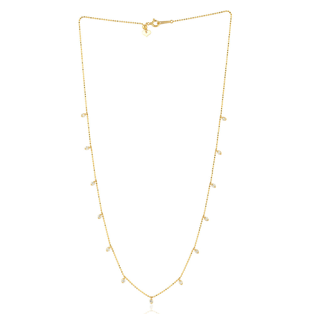 Natural Diamond Dainty Chain 18k yellow Gold Necklace Birthday Gift On Sale