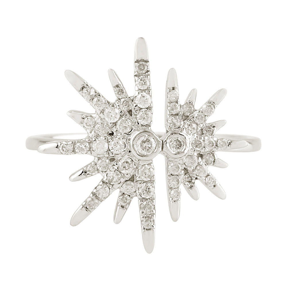 14K White Gold Micro Pave Beautiful Double Sunburst Ring