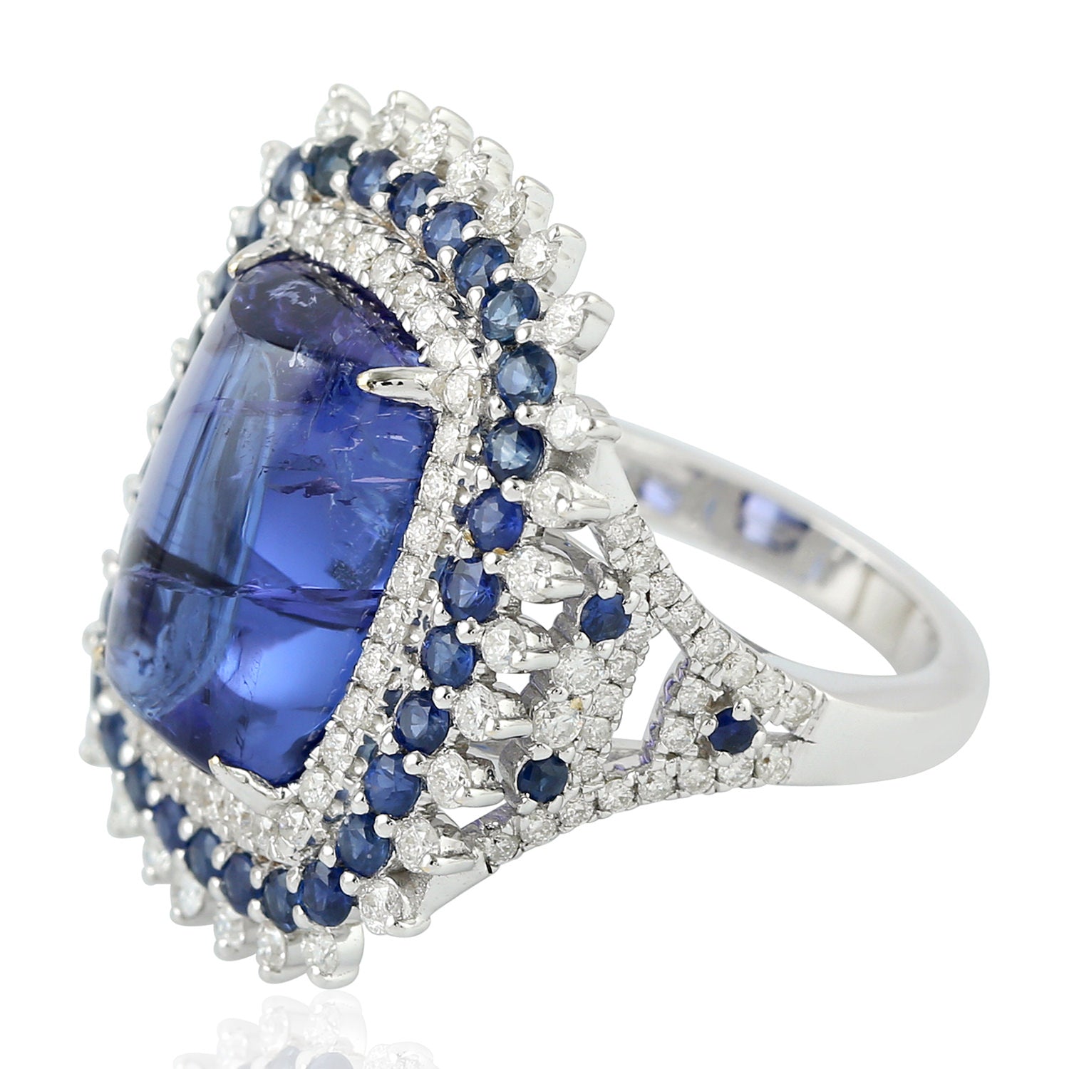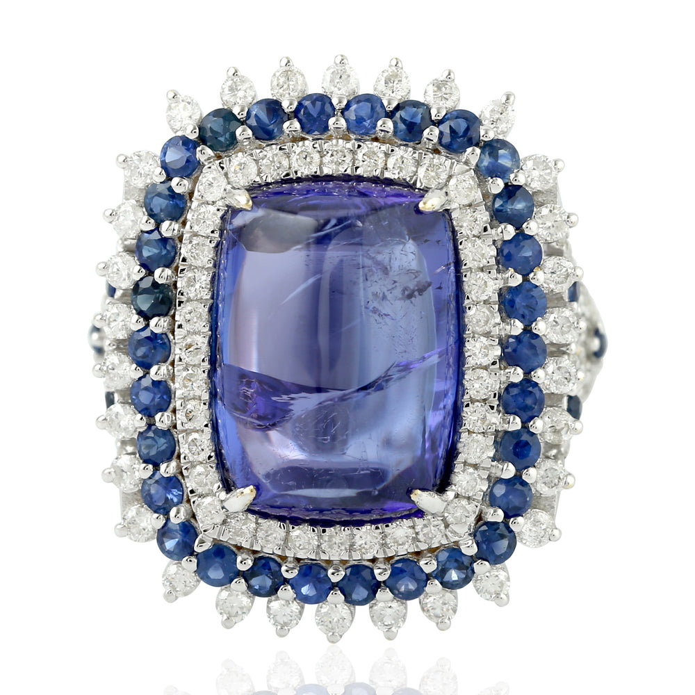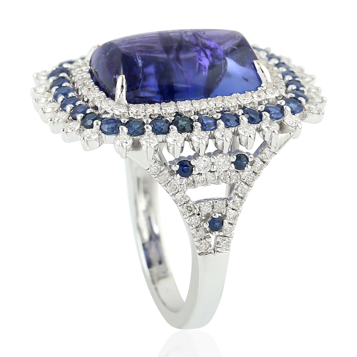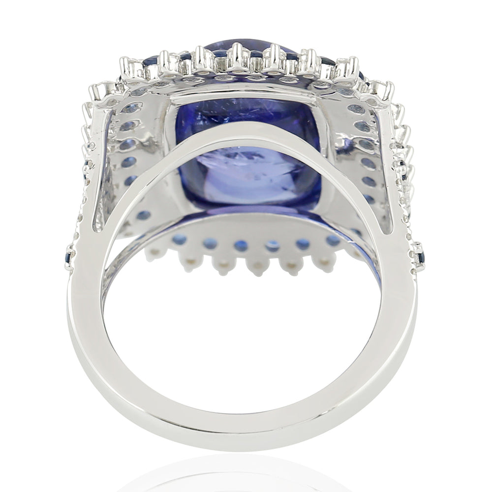 Cushion Cut Tanzanite Prong Blue Sapphire Pave Diamond Cocktail Ring In White Gold