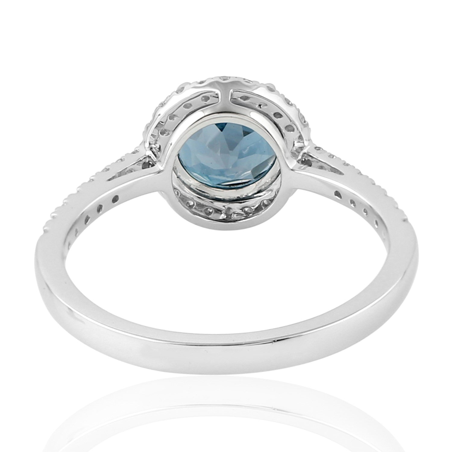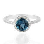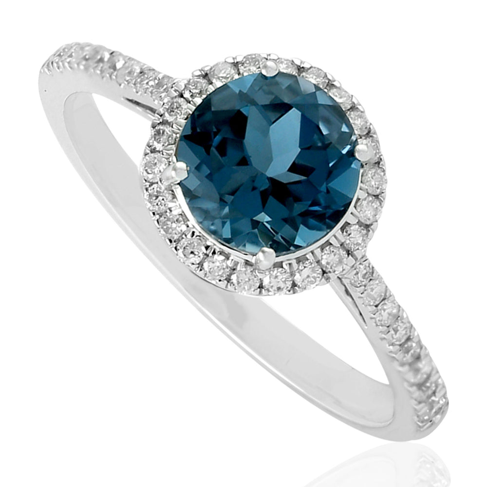 London Topaz Gemstone Pave Diamond Solitaire Ring In 18K White Gold